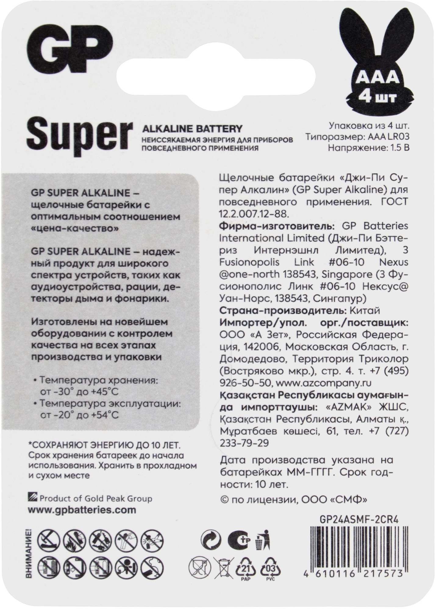 Батарея GP Super Alkaline 24ASMF-2CR4