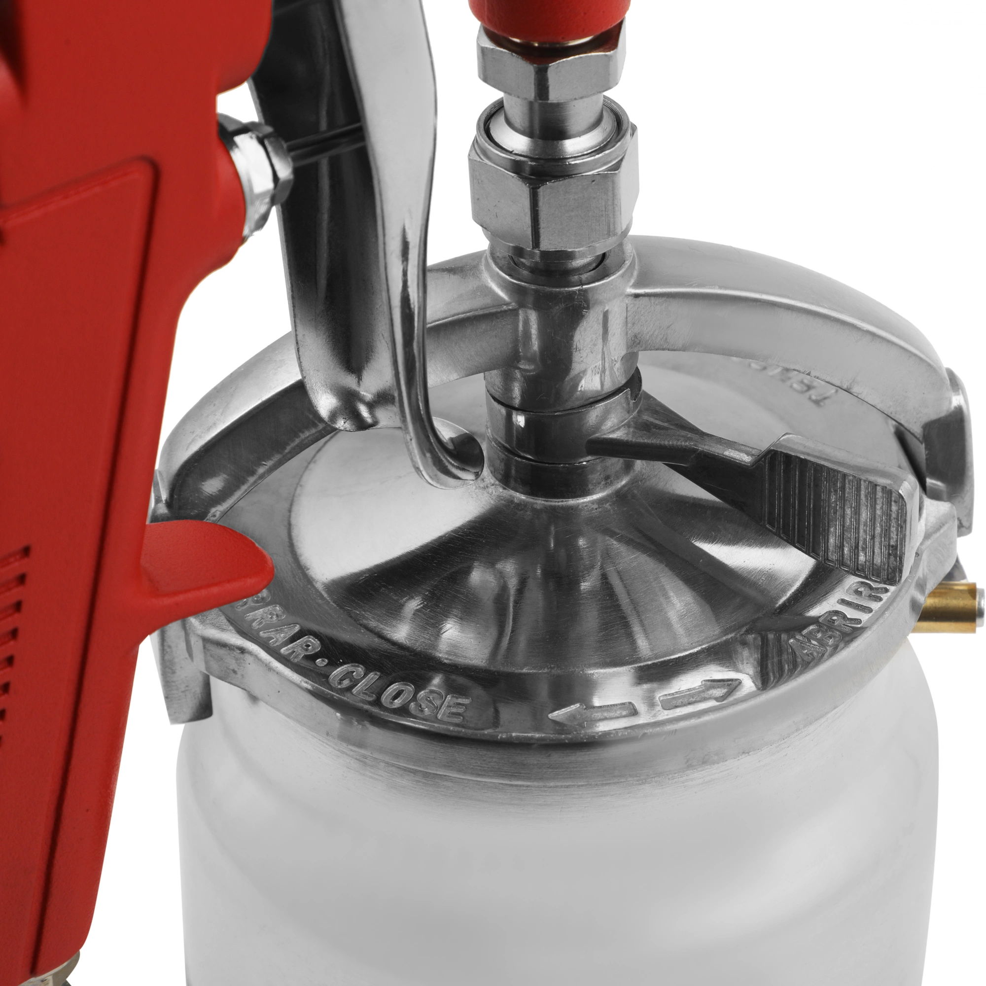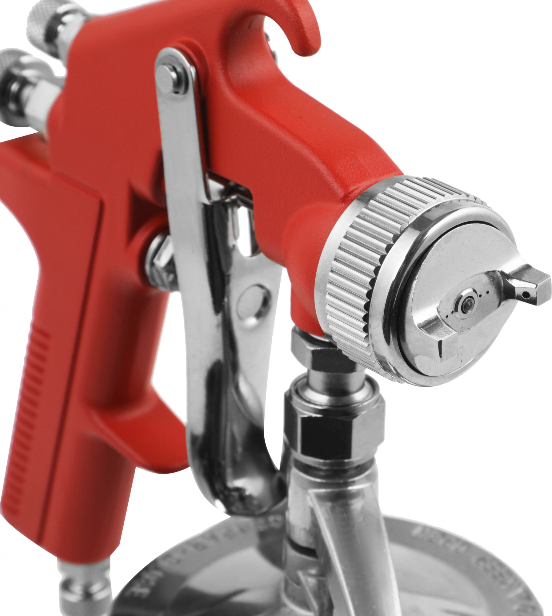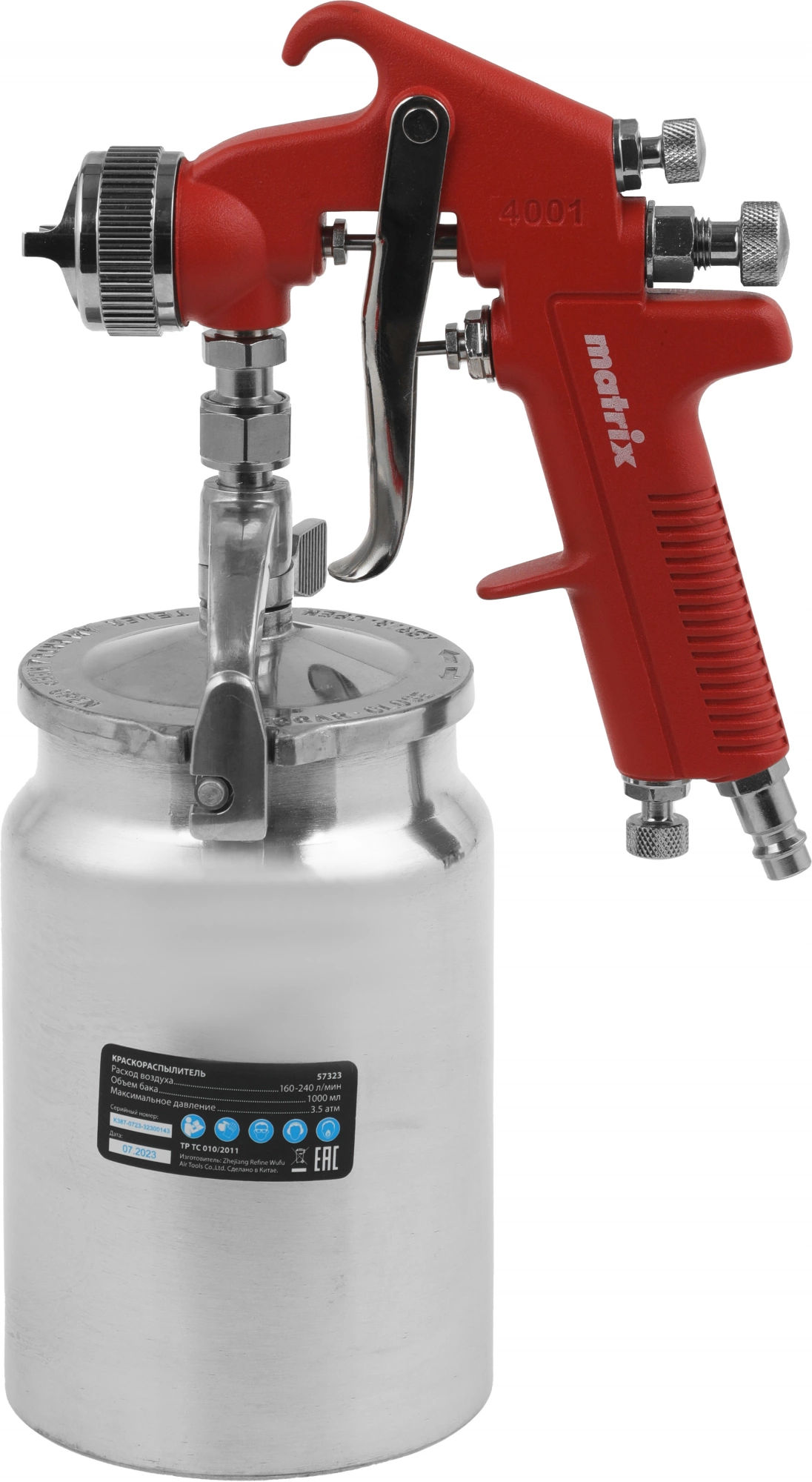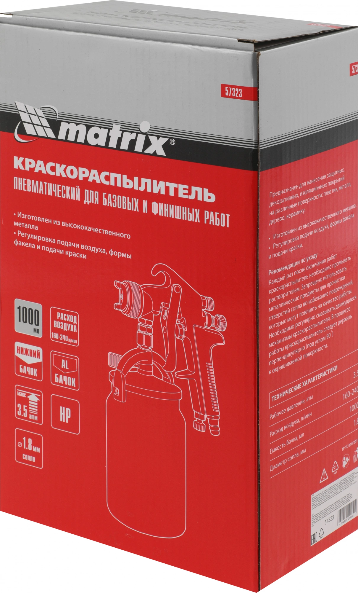 Пневматический краскораспылитель HP MTX 57323 с нижним бачком объемом 1 л., с соплом диаметром 1,8 мм., расходует 160-240 л. воздуха в минуту и предназначен для выполнения окрасочных работ. Позволяет работать с лакокрасочными материалами разных типов и консистенции.