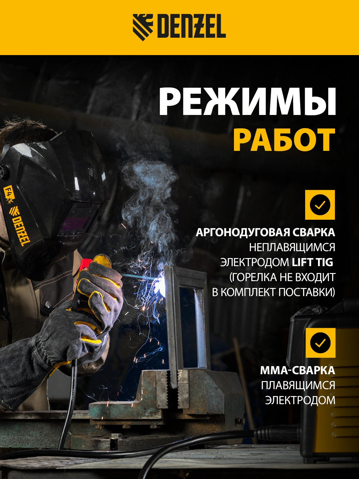 Сварочный аппарат, кабель с держателем электрода, кабель с зажимом "земля", инструкция по эксплуатации с гарантийным талоном.