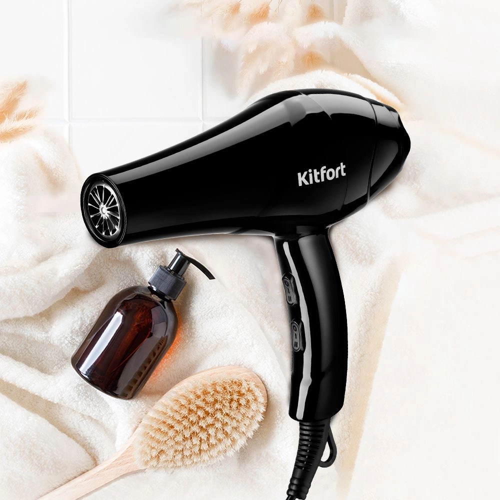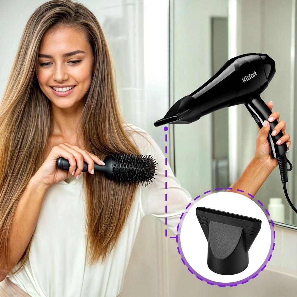 Фен Kitfort КТ-3204 позволяет быстро и комфортно ухаживать за волосами каждый день. Вы сможете быстро высушить волосы и сделать красивую укладку. Он оснащён мотором, мощность которого составляет до 1200 Вт.