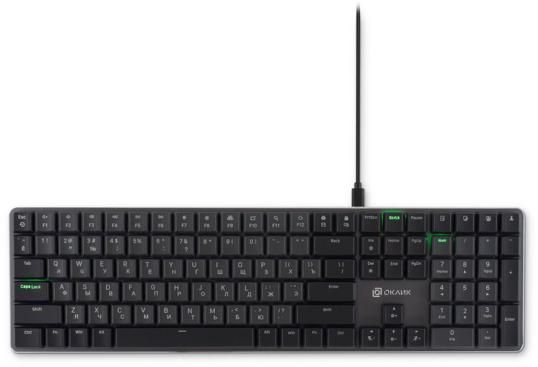 Клавиатура Oklick K953X – это низкопрофильное механическое устройство, созданное для эффективной работы и увлекательных игровых сессий. Эта модель оснащена переключателями коричневого цвета, которые отвечают за тактильное срабатывание клавиш с приятной обратной связью.