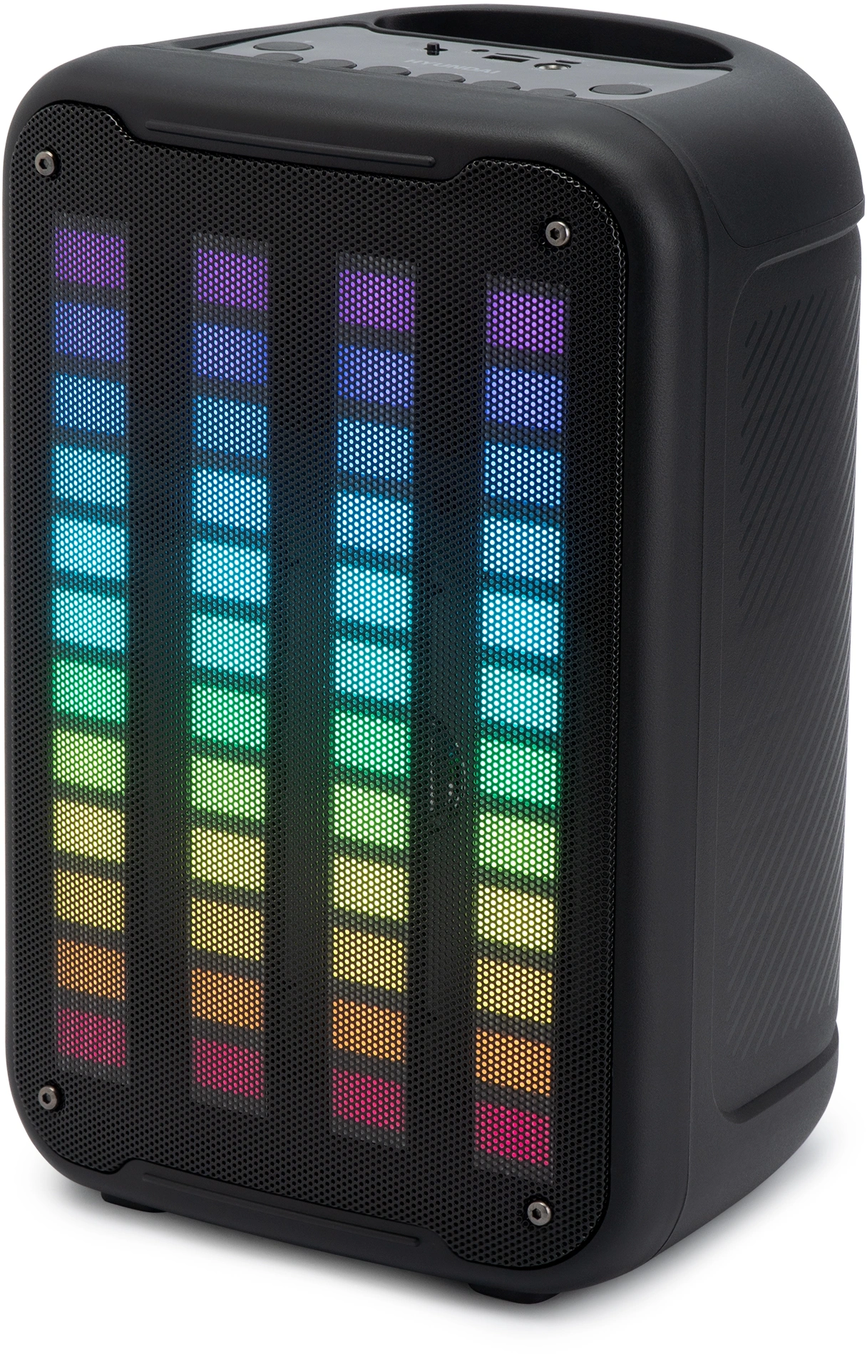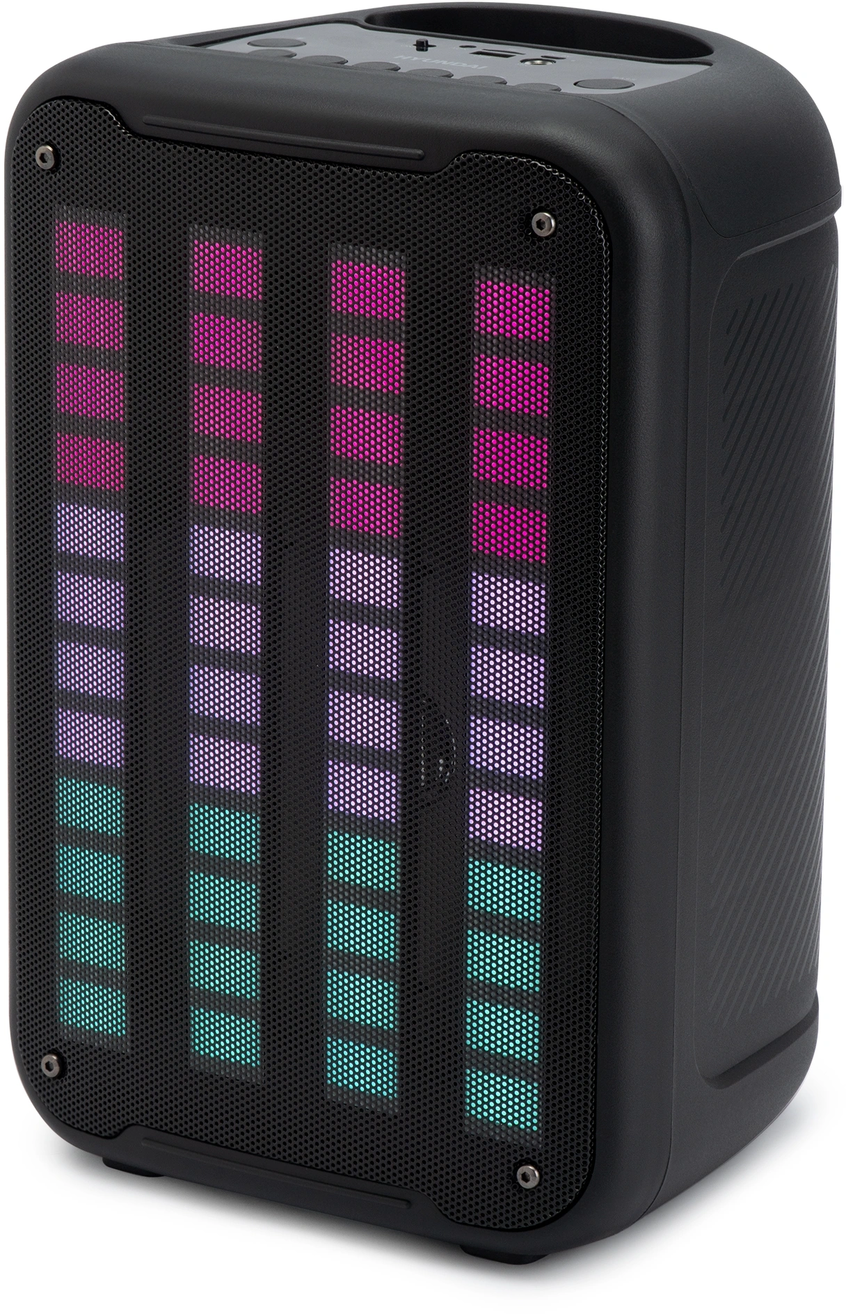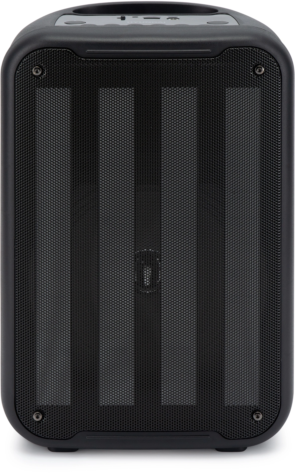 Мощности колонки в 25 Вт хватает, чтобы организовать на пикнике достаточно громкую музыку или наполнить ей небольшое помещение. Передняя панель устройства выполнена в виде яркого эквалайзера, двигающегося в такт мелодии на манер светомузыки.