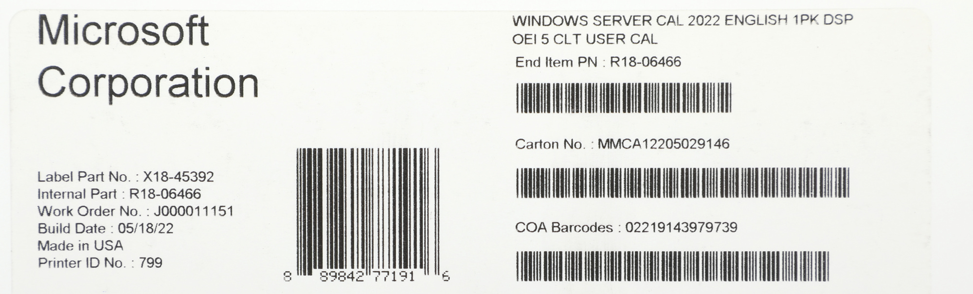 Включает в себя 5 лицензий клиентского доступа по числу пользователей (UserCAL)