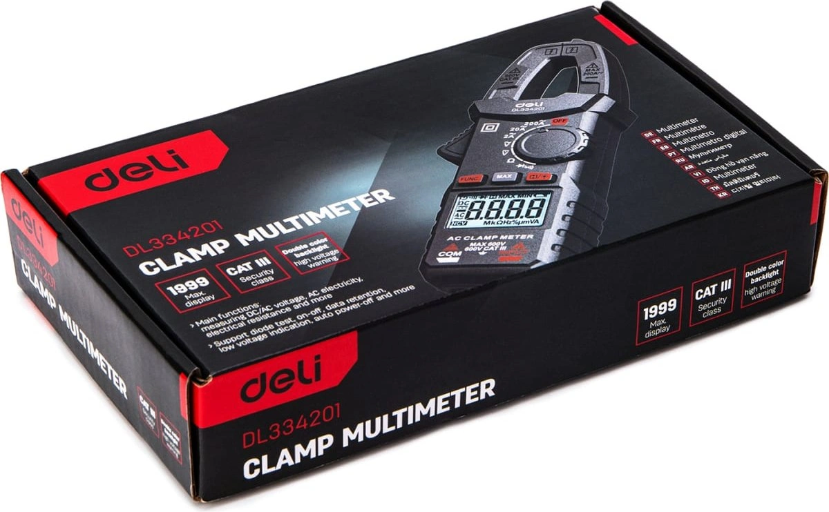 Токоизмерительные цифровые клещи DELI DL334201 102979 используются для измерения переменного тока, постоянного и переменного напряжения и сопротивления.