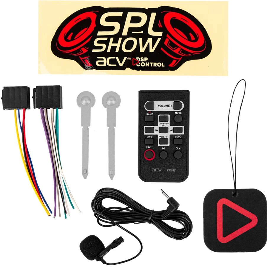 Ресивер, Пульт дистанционного управления, Микрофон, ISO коннекторы, Монтажная корзина, Ключи для монтажа (2 шт.), Рамка, Инструкция, Гарантийный талон, Печатный материал с наклейками