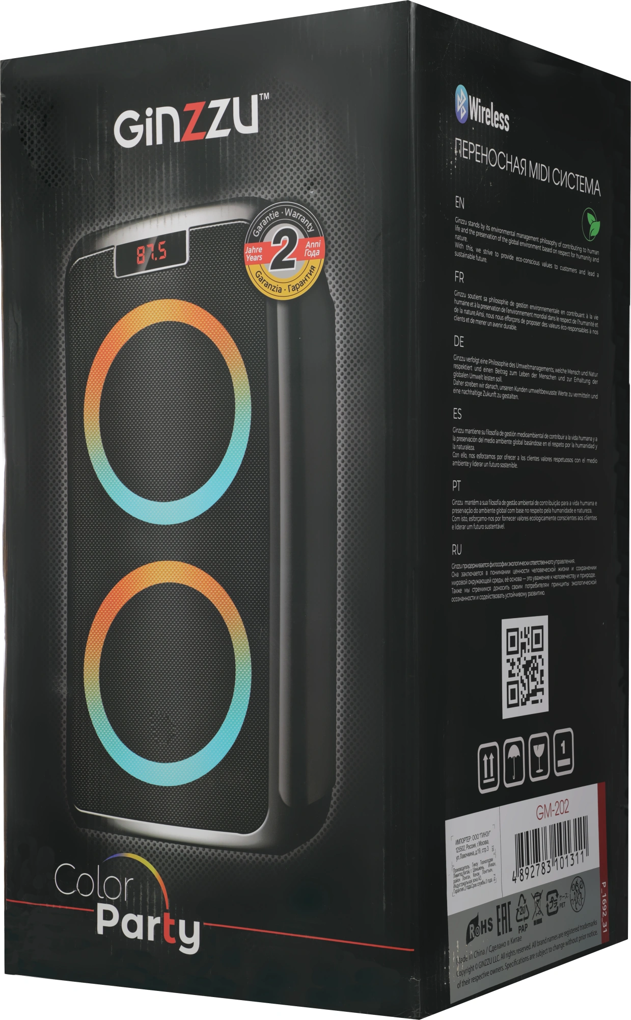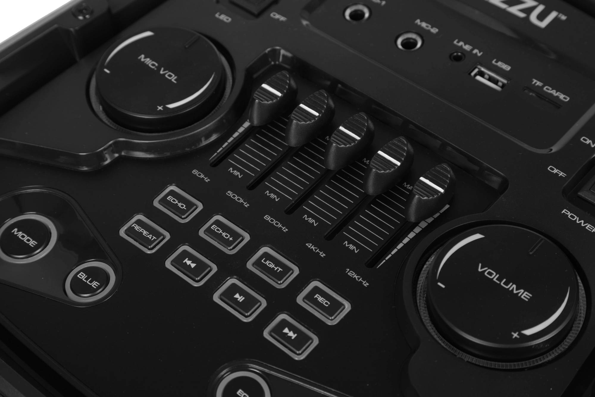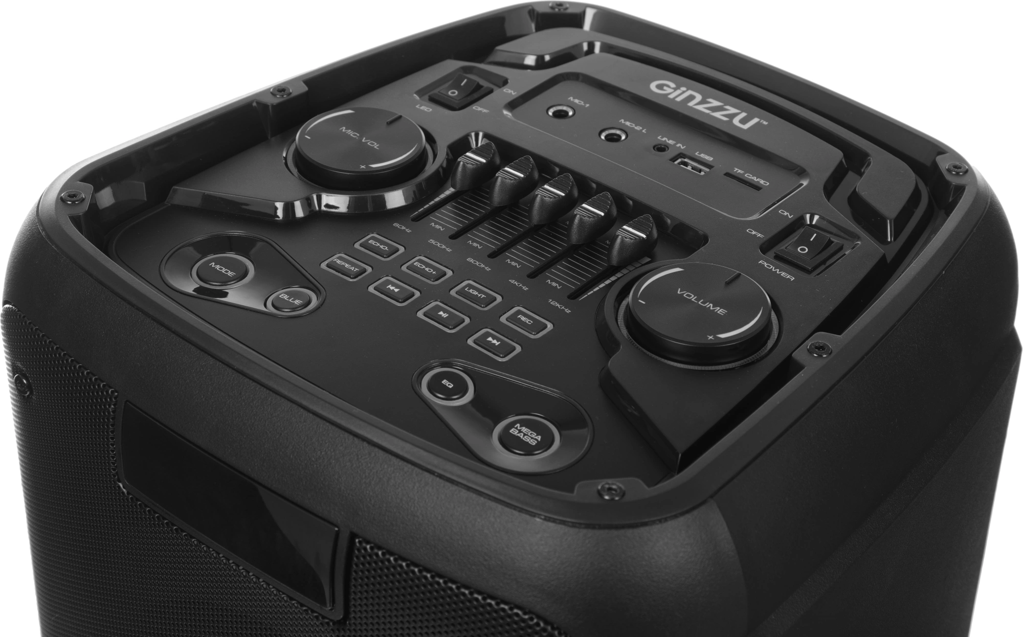 Мощность (RMS) - 100Вт. ДИНАМИКИ: НЧ/СЧ - 2 х 8 дюймов, ВЧ - 1 х 2 дюйма, MEGABASS, Регулировка ВЧ и НЧ, КАРАОКЕ 2 микрофона 6.3мм, ДИНАМИЧЕСКАЯ RGB подсветка динамиков, Bluetooth, ЭКВАЛАЙЗЕР, Аккумулятор 12V /4500 мАч и питание от сети 220V, FM РАДИО, АУДИО-ПЛЕЕР: USB-flash и микро SD, AUX, ПДУ