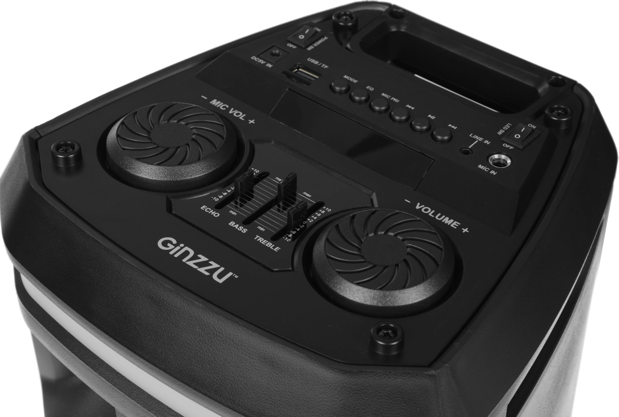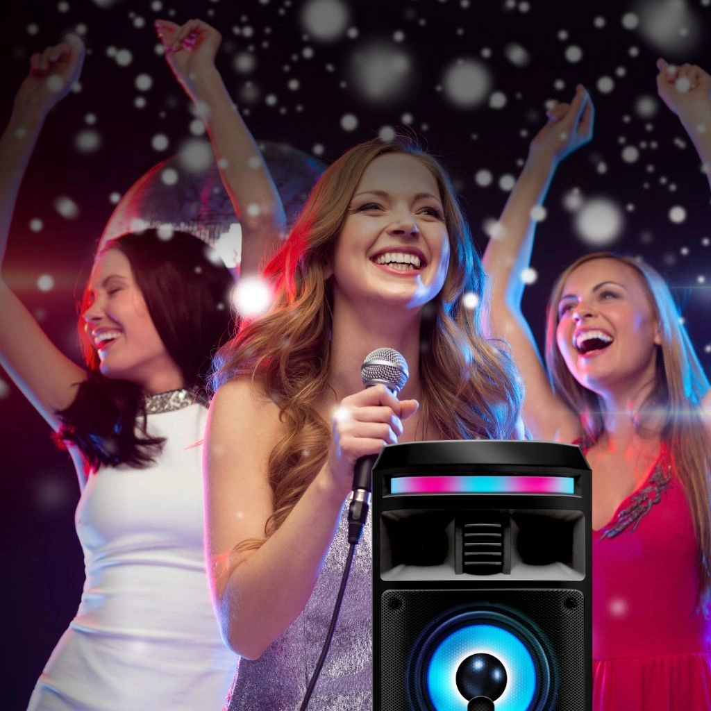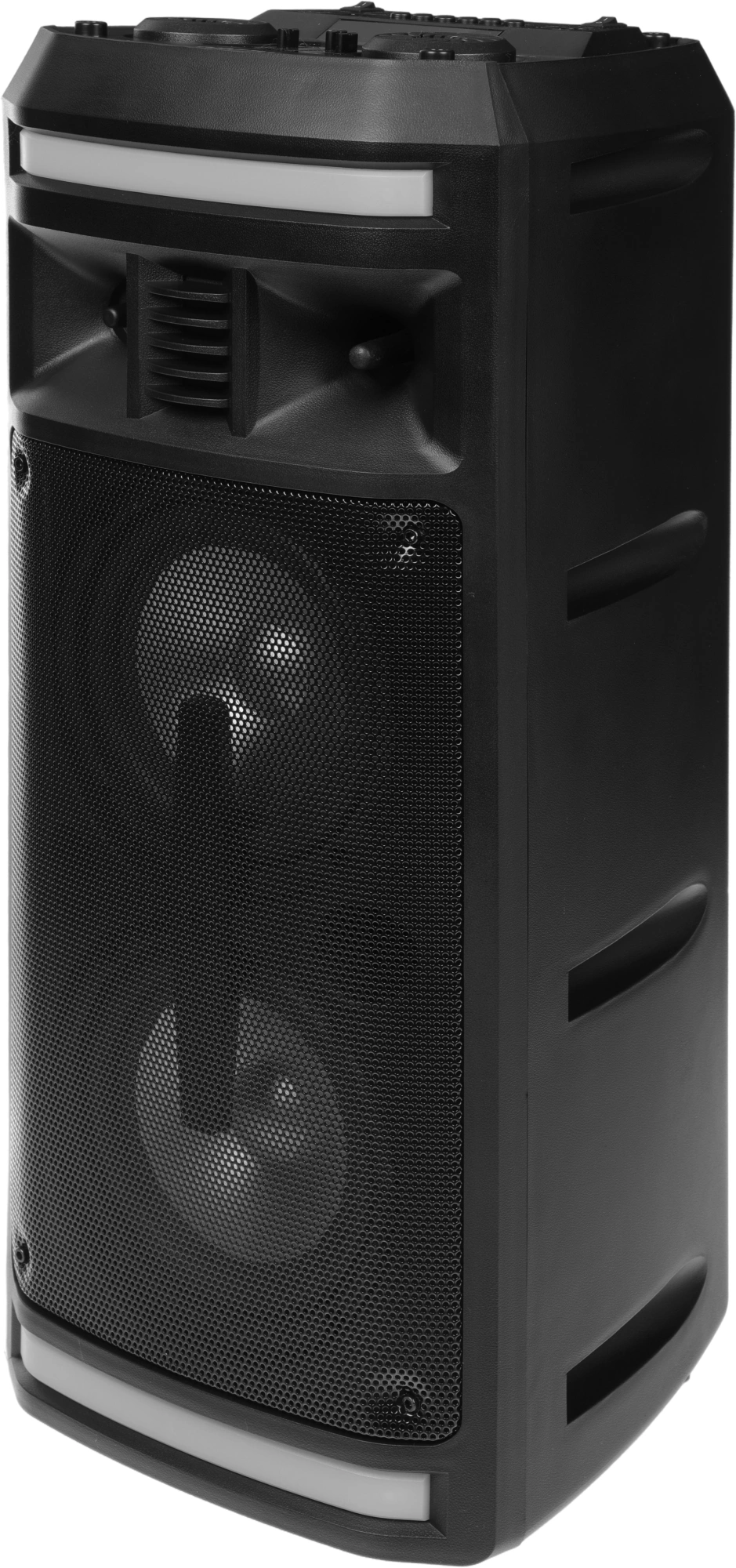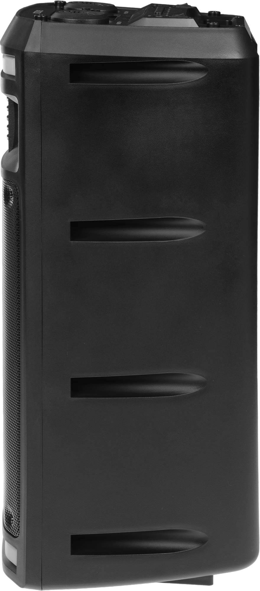Мощность (RMS) - 50Вт. ДИНАМИКИ: НЧ/СЧ - 2 х 6,5 дюймов, ВЧ - 1 х 1 дюйма, Регулировка ВЧ и НЧ, КАРАОКЕ 1* 6.3мм, ДИНАМИЧЕСКАЯ RGB подсветка динамиков, Bluetooth V4.2, ЭКВАЛАЙЗЕР, Аккумулятор 3,7V /3600 мАч, FM РАДИО, АУДИО-ПЛЕЕР: USB-flash и микро SD, AUX, ПДУ.