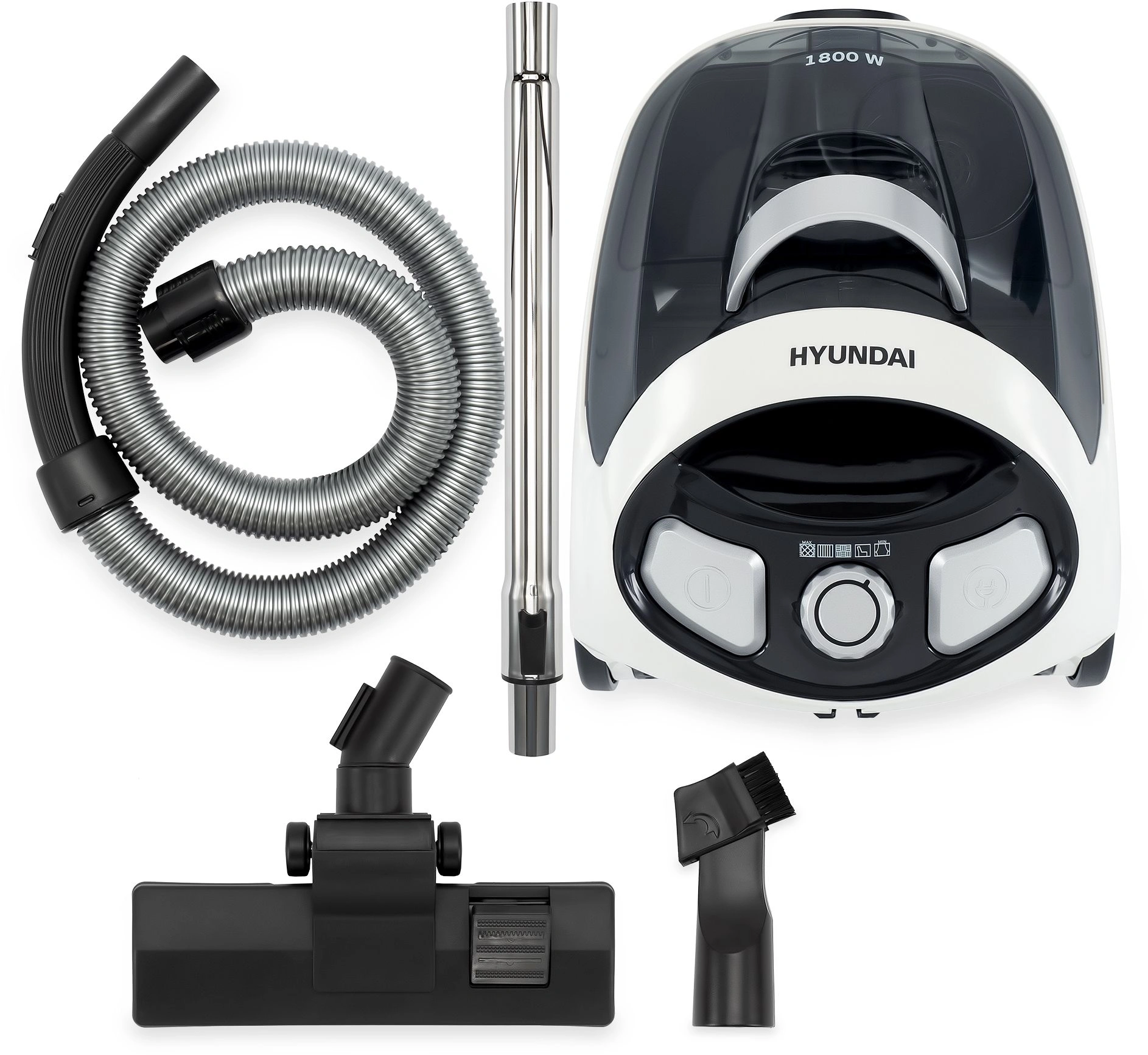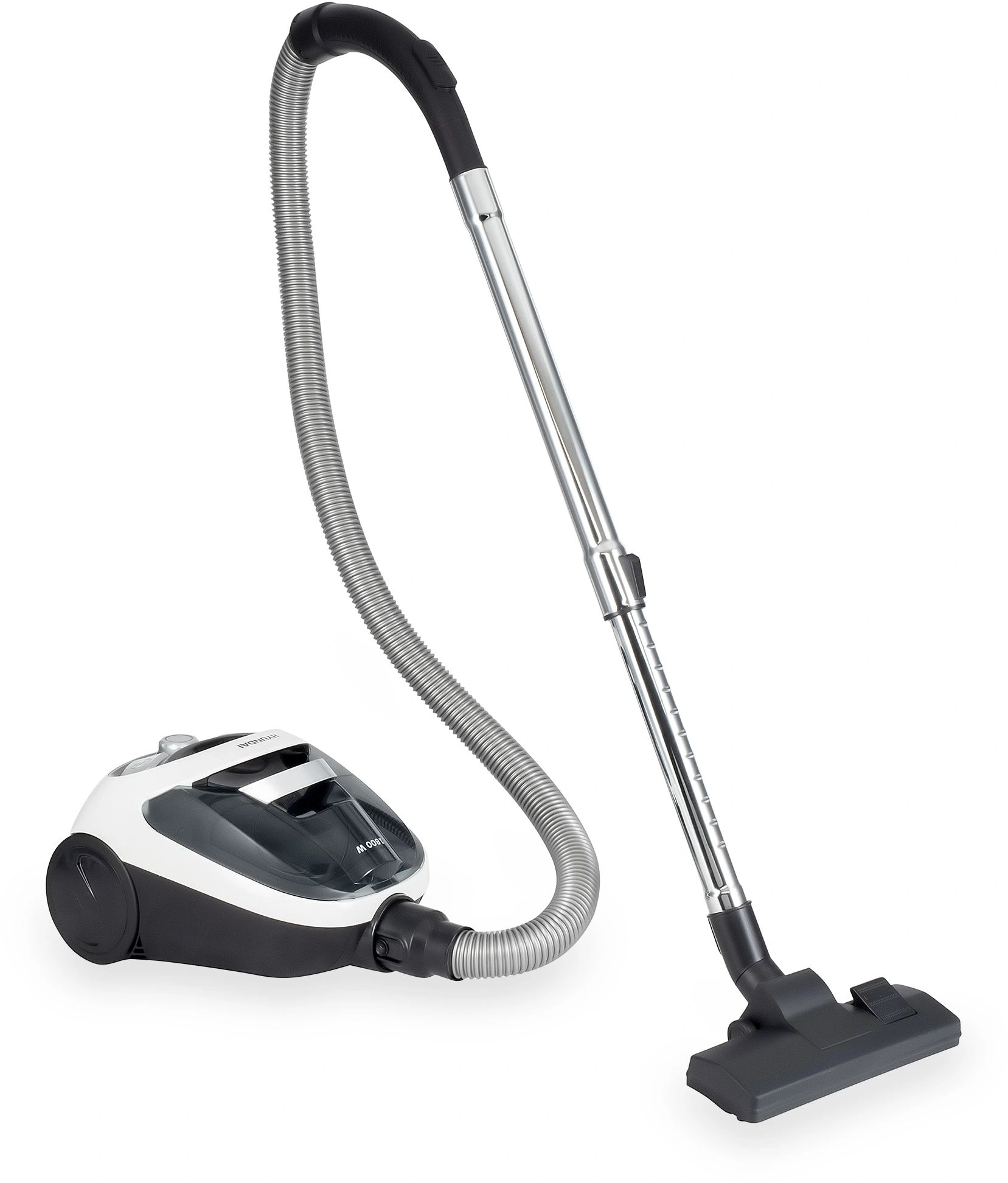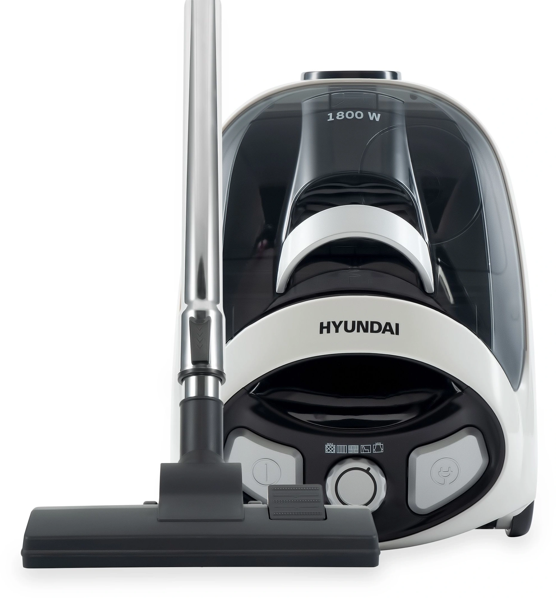 Девайс оснащён двигателем с общей мощностью 1800 Вт, но непосредственно для всасывания используется 250 Вт. Такое сочетание двух параметров преследует цель снизить энергопотребление, не прибегая при этом к компромиссам по качеству сухой уборки. Кроме того, у данной модели варьируется мощность. Для этого на её лёгком и прочном пластиковом корпусе предусмотрен эргономичный поворотный регулятор с пятью опциями. Но даже на максимальном выставленном уровне громкость работы Hyundai HYV-C1995 не превышает 84 дБ.