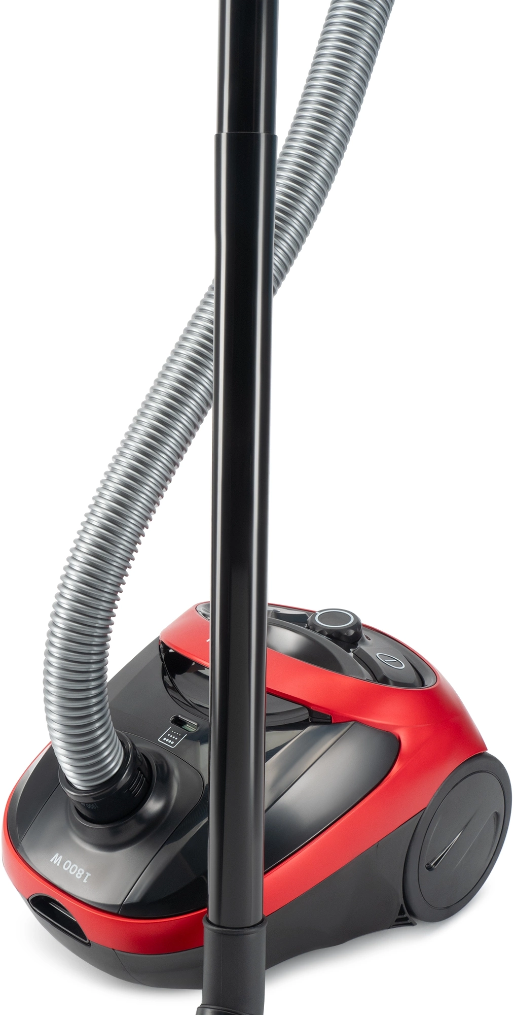 Благодаря общей мощности 1800 Вт и мощности всасывания 250 Вт сухая уборка с прибором превращается в быстрое и приятное занятие. При этом данный параметр можно легко варьировать с помощью специального поворотного регулятора, установленного на прочный и лёгкий корпус устройства. Материалом для его производства служит прочный и лёгкий пластик. В сочетании с большими колесами и эргономичной ручкой этот аспект позволяет с лёгкостью перемещать пылесос в любых условиях.