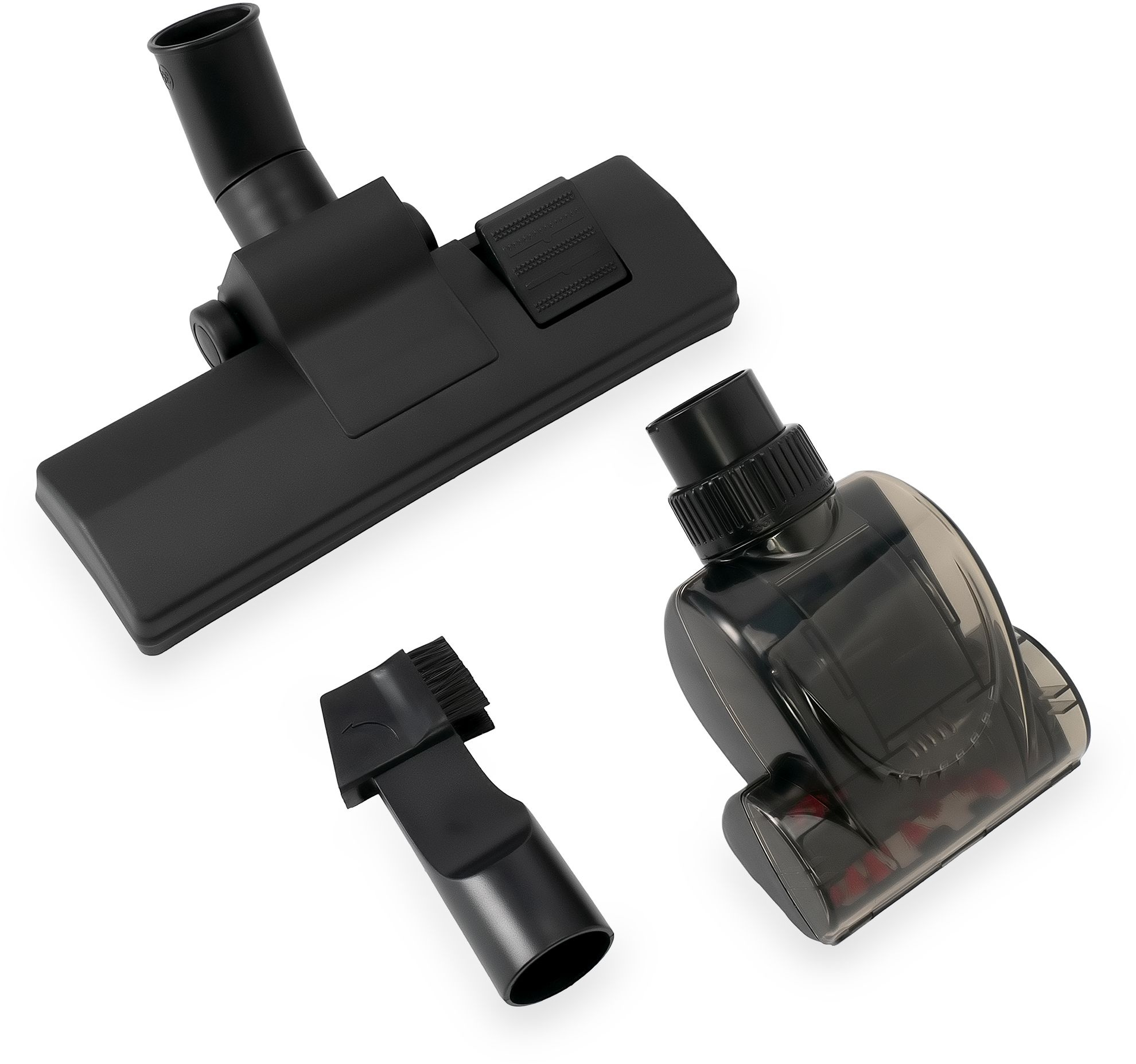 Трубка, которой оснащен Hyundai HYV-C3373, имеет телескопическую конструкцию, и её длина с легкостью регулируется. Эта удобная особенность позволяет убираться с бОльшим комфортом. Кроме того, в комплекте с девайсом поставляется набор насадок для эффективной уборки даже в труднодоступных зонах. Всего их предусмотрено четыре штуки. Для крепления трубки на корпусе Hyundai HYV-C3373 есть специальное крепление-фиксатор.
