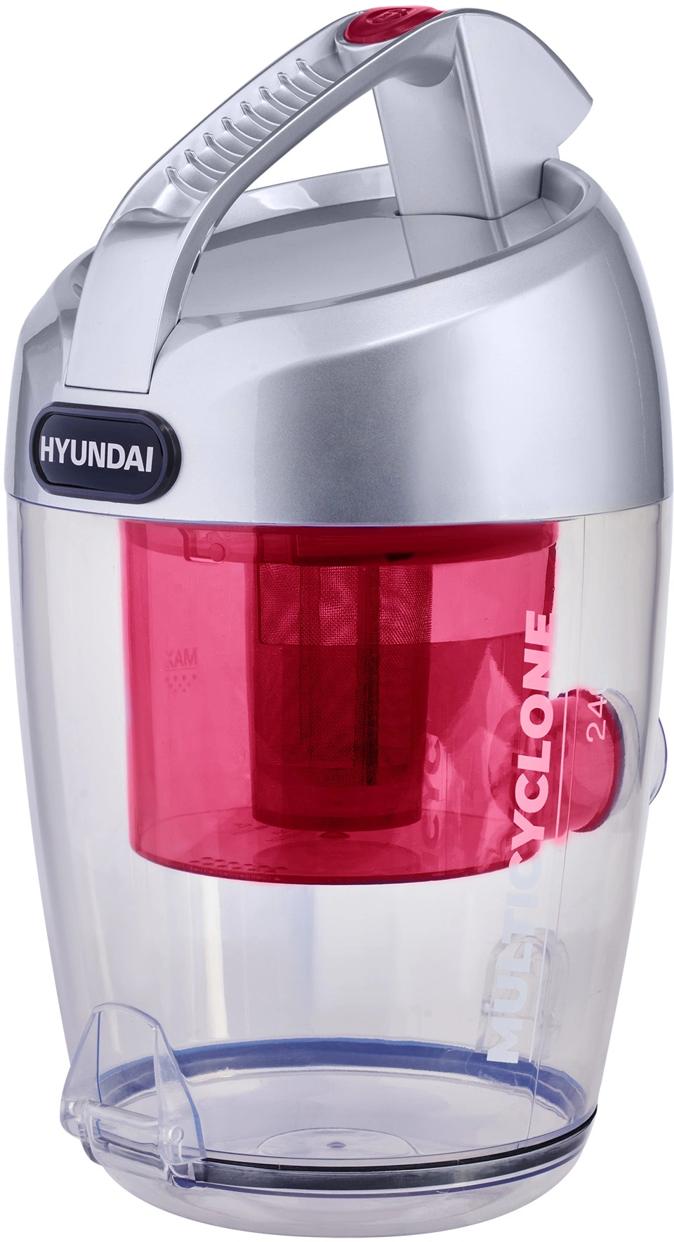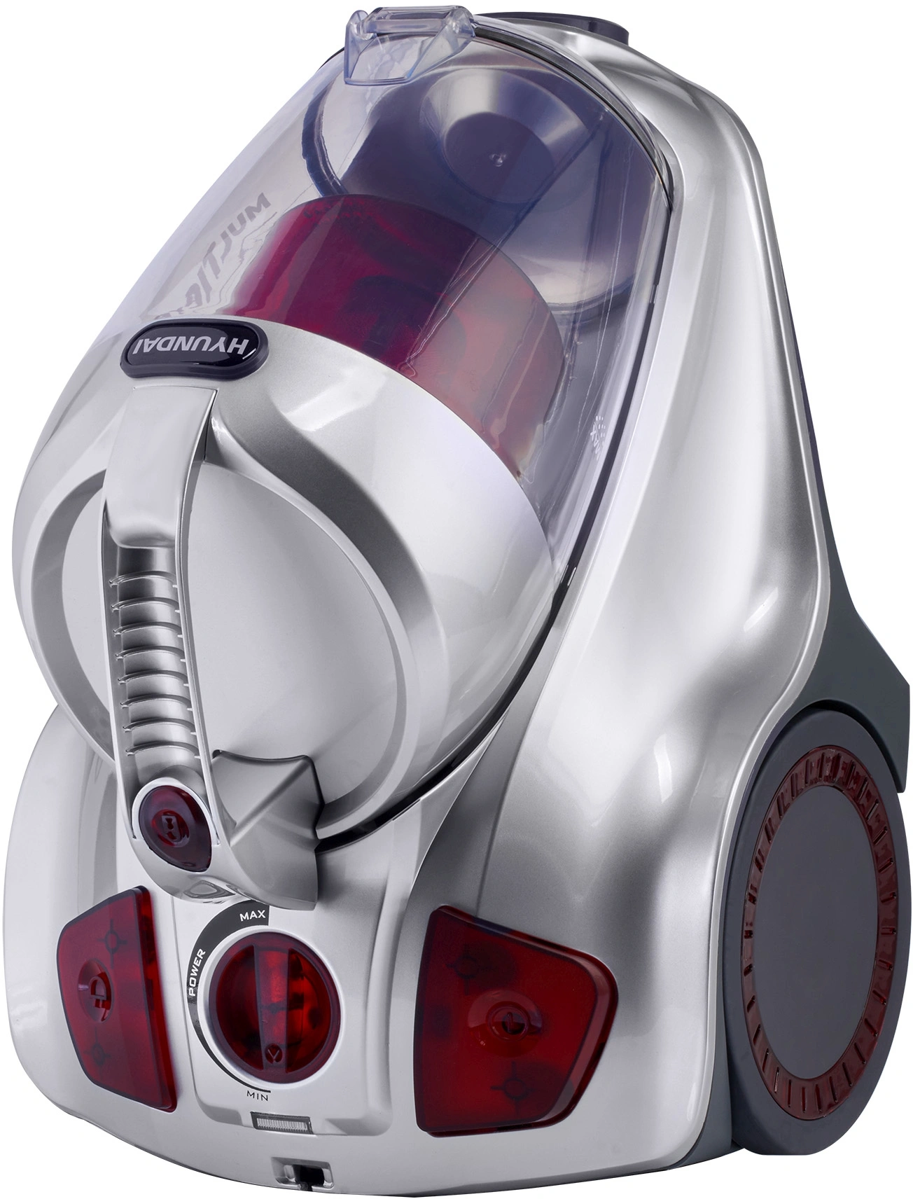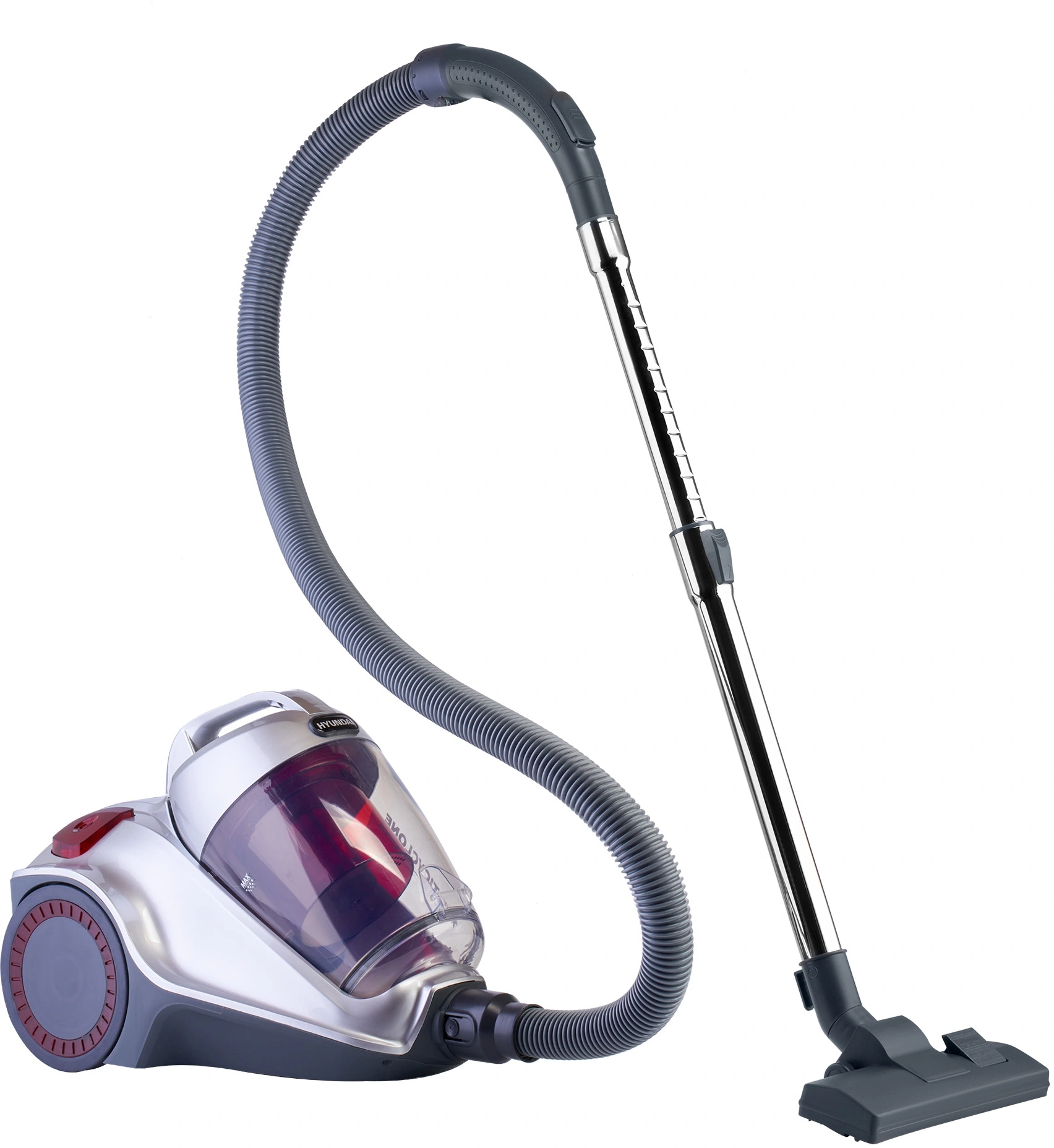 Для удобства перемещения Hyundai HYV-C4570 обладает парой колес, а для переноски у него предусмотрена удобная рукоятка.
