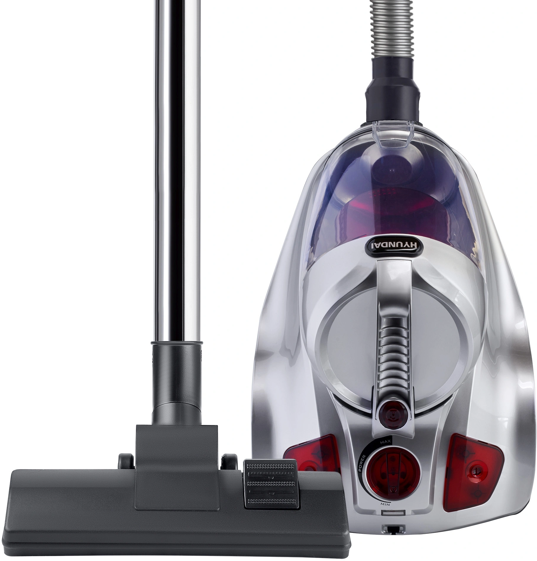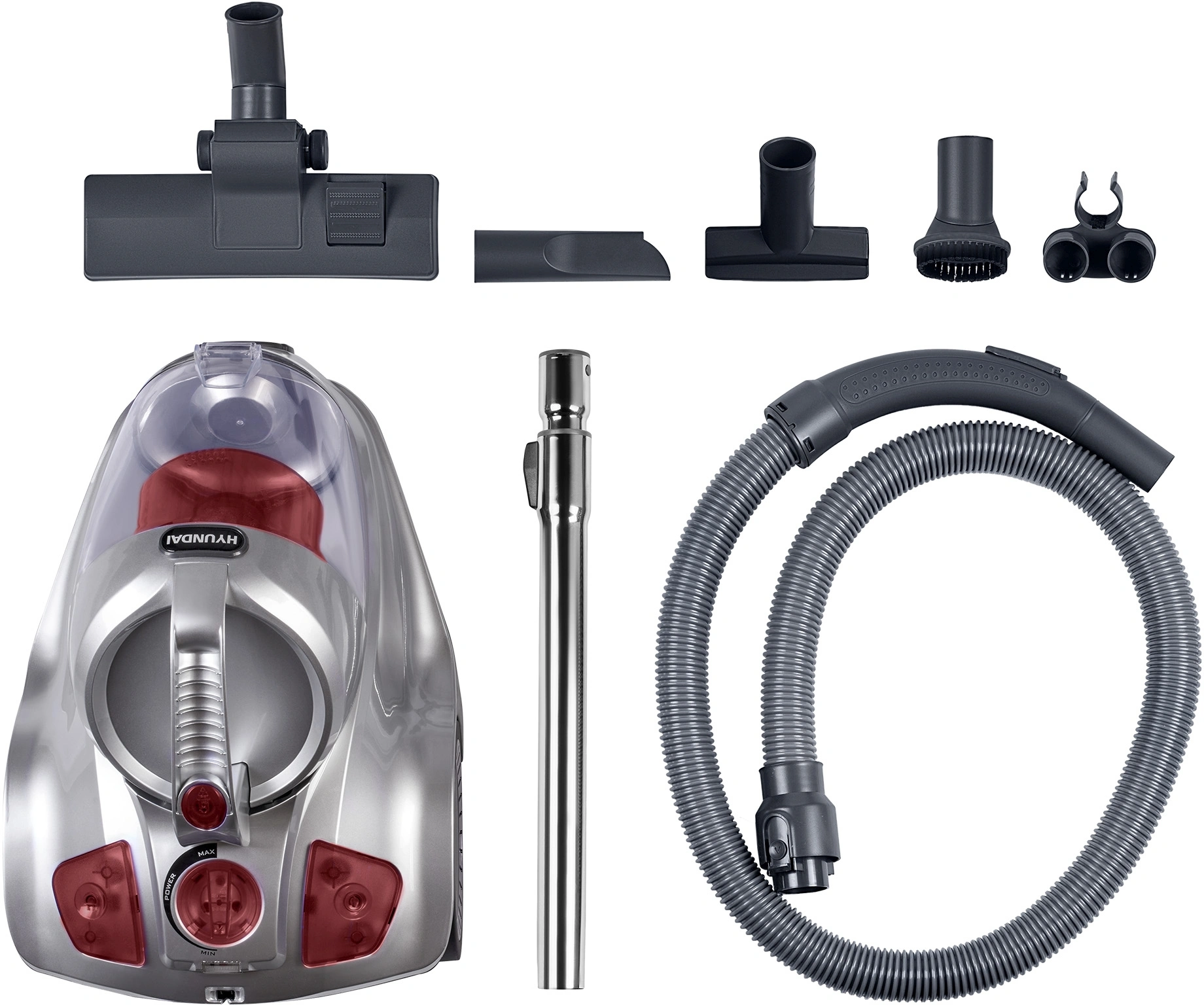 Общая мощность Hyundai HYV-C4570 составляет 2400 Вт, для всасывания данная модель может использовать до 380 Вт. Однако её можно регулировать и менять. Для этого пластиковый корпус имеет соответствующий орган. Управление устройством сделано интуитивно, все его аспекты подробно изложены в идущем в комплекте руководстве по эксплуатации. Также набор включает сразу 6 различных насадок. Каждая из них имеет собственный функционал и обеспечивает высокую вариативность девайса. Среди них есть и щётка для чистки контейнера. Кроме того, уровень шума даже на самом сильном режиме не превышает 88 дБ.