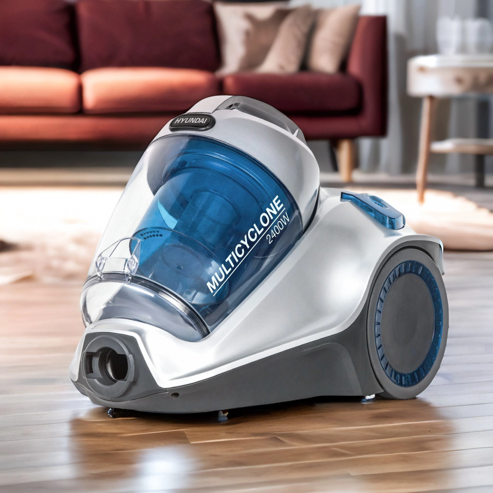 Внутри Hyundai HYV-C4575 работает система мультициклон для тонкой фильтрации поступающего воздуха от примесей любого размера, даже самых мелких. Устройство работает с контейнером для пыли, объём пылесборника составляет 5 л. Ёмкости хватает сразу на несколько уборок перед тем, как появляется надобность её опустошать и чистить.