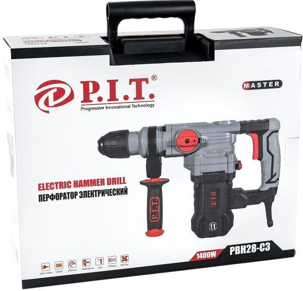 Перфоратор, пластиковый кейс, дополнительная рукоятка, ключ, щетки угольные, буры (3 шт.), зубило плоское, зубило пикообразное, смазка для редуктора, пыльник, ограничитель глубины сверления, инструкция по эксплуатации.