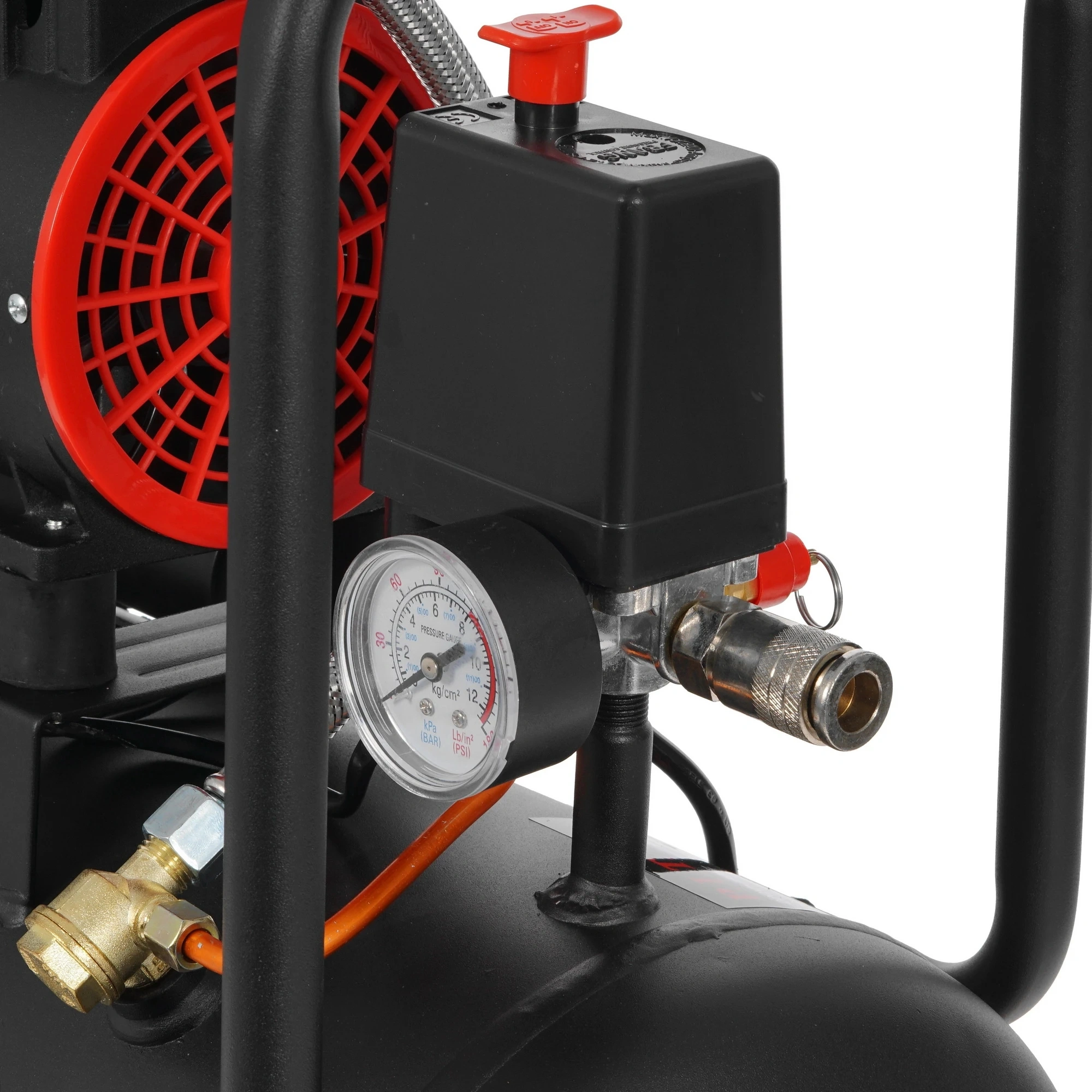 Наличие манометра, регулировка давления, защита двигателя от перегрева.