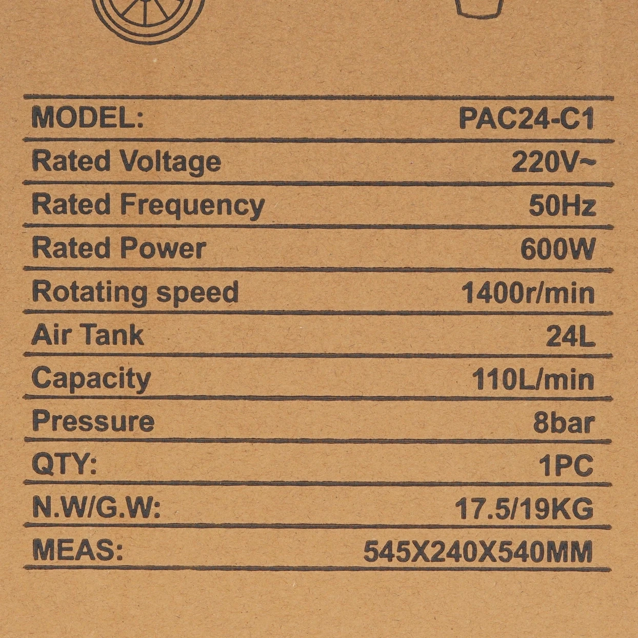 Воздушный компрессор, воздушный фильтр, коробка, комплект колес, руководство по эксплуатации.