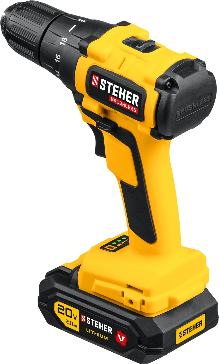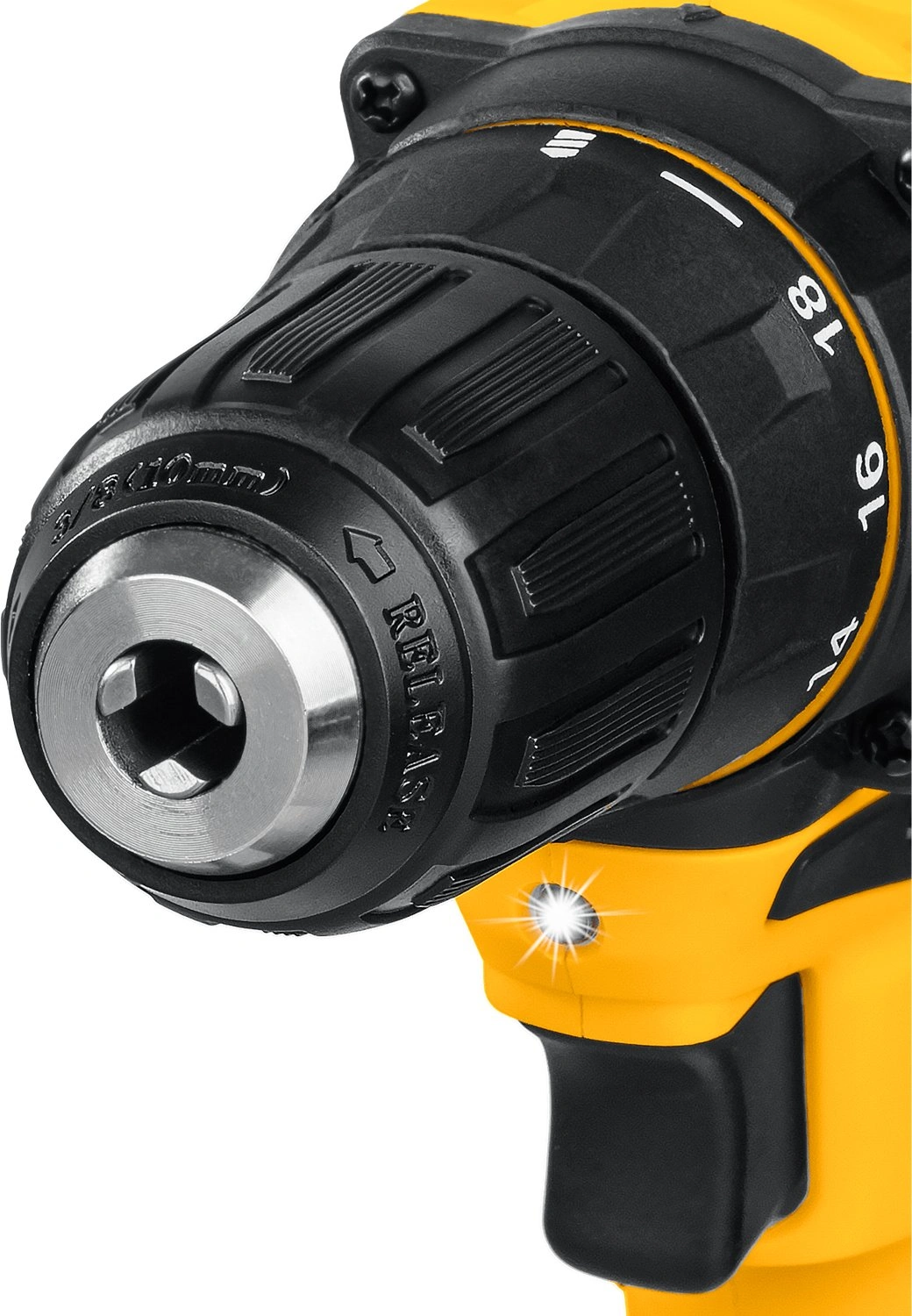 Дрель-шуруповерт, аккумулятор, быстрозарядное устройство, биты 50 мм. PH, PZ, скоба крепления, кейс, руководство по эксплуатации.