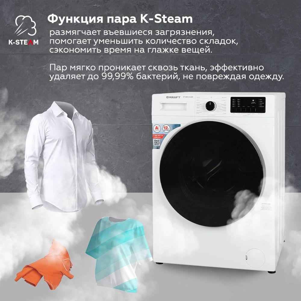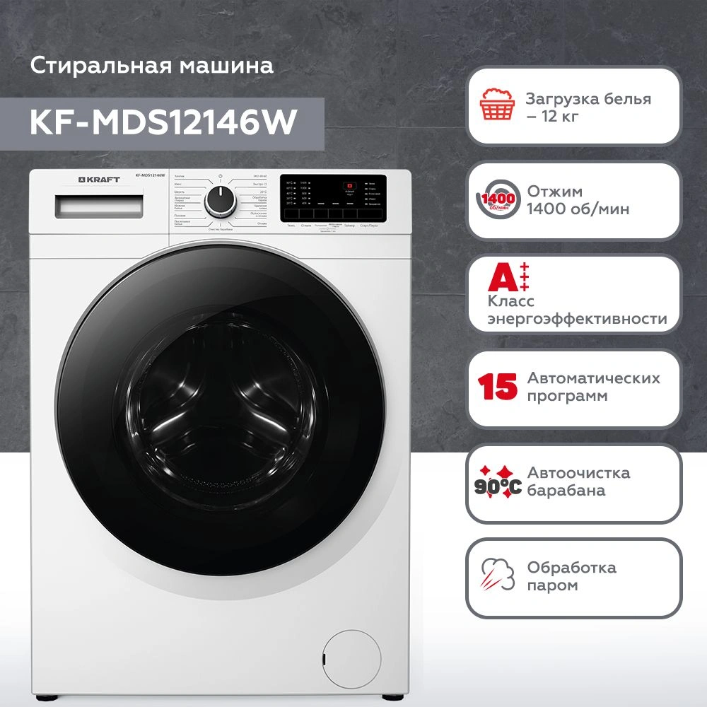 класс: A+++ загр.фронтальная макс.:12кг белый инве...