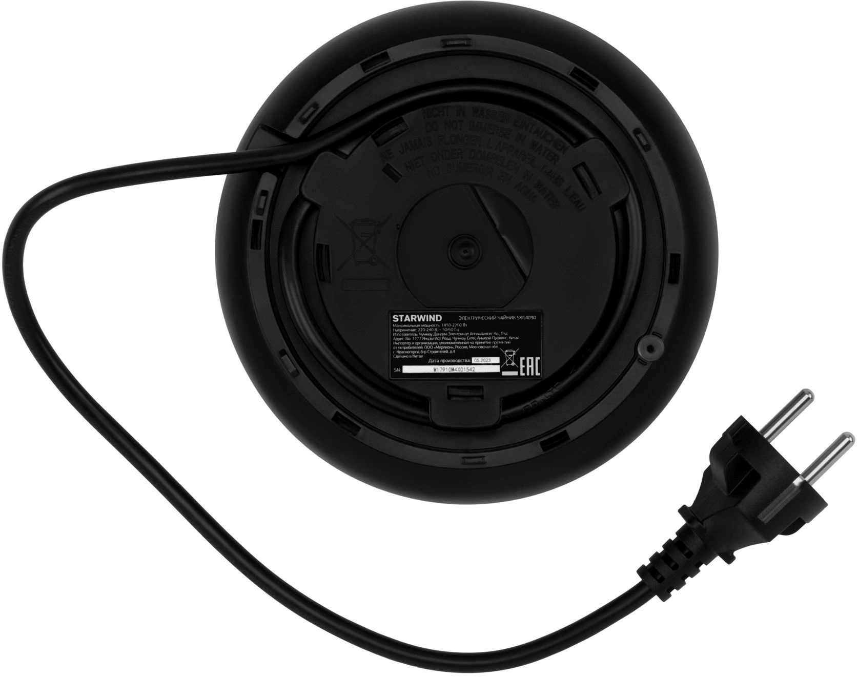 Нагревательный элемент чайника предусмотрительно скрыт, так что об него невозможно обжечься. Подставка Starwind SKG4030 имеет конструкцию 360 градусов, так что устройство можно ставить на неё любой стороной.
