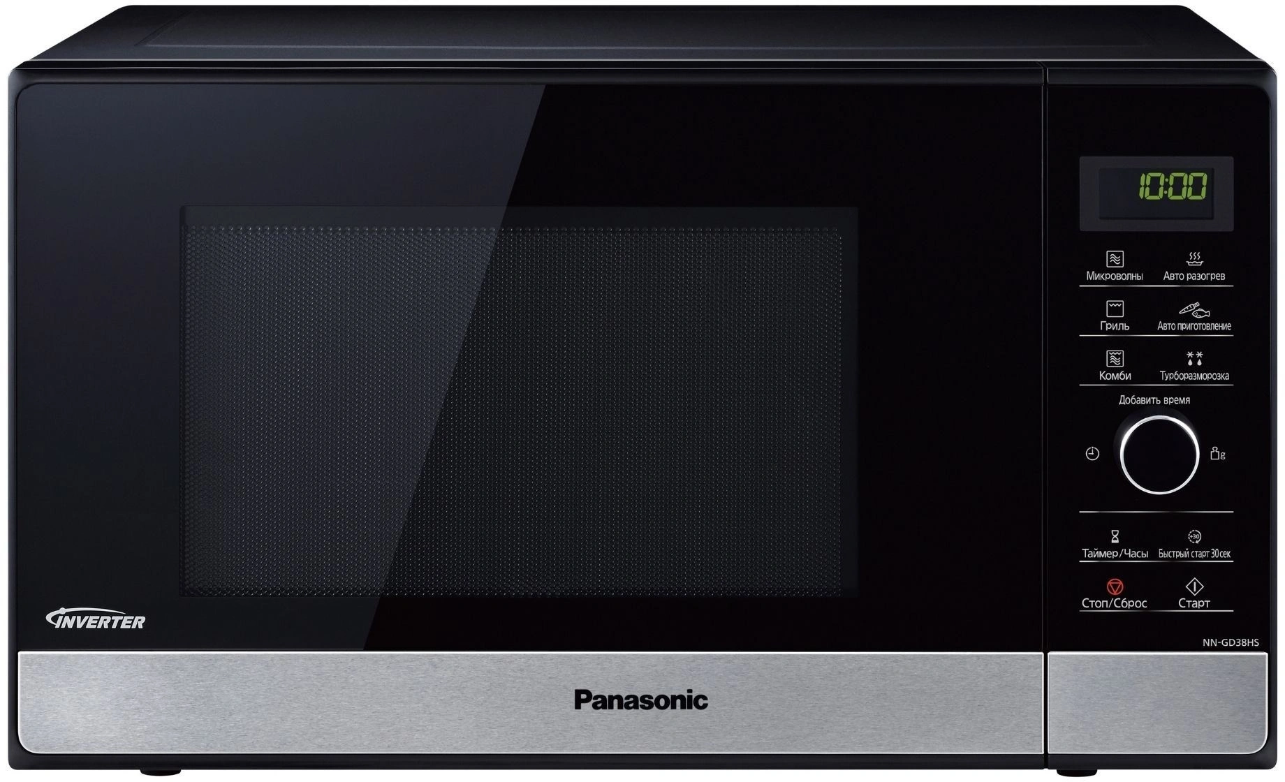 В микроволновой печи Panasonic NN-GD38HSZPE можно готовить и разогревать пищу, а также размораживать полуфабрикаты. Важная особенность этой модели – инверторное управление, позволяющее задействовать комбинацию СВЧ и гриля. Хорошо подходит для выпечки и жарения с образованием хрустящей корочки.