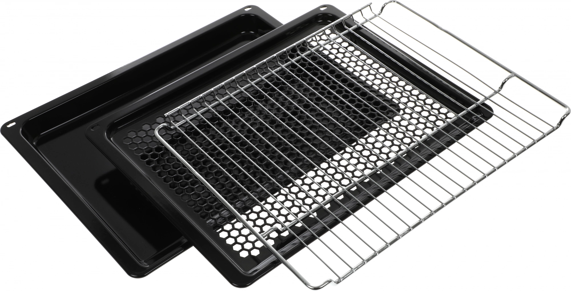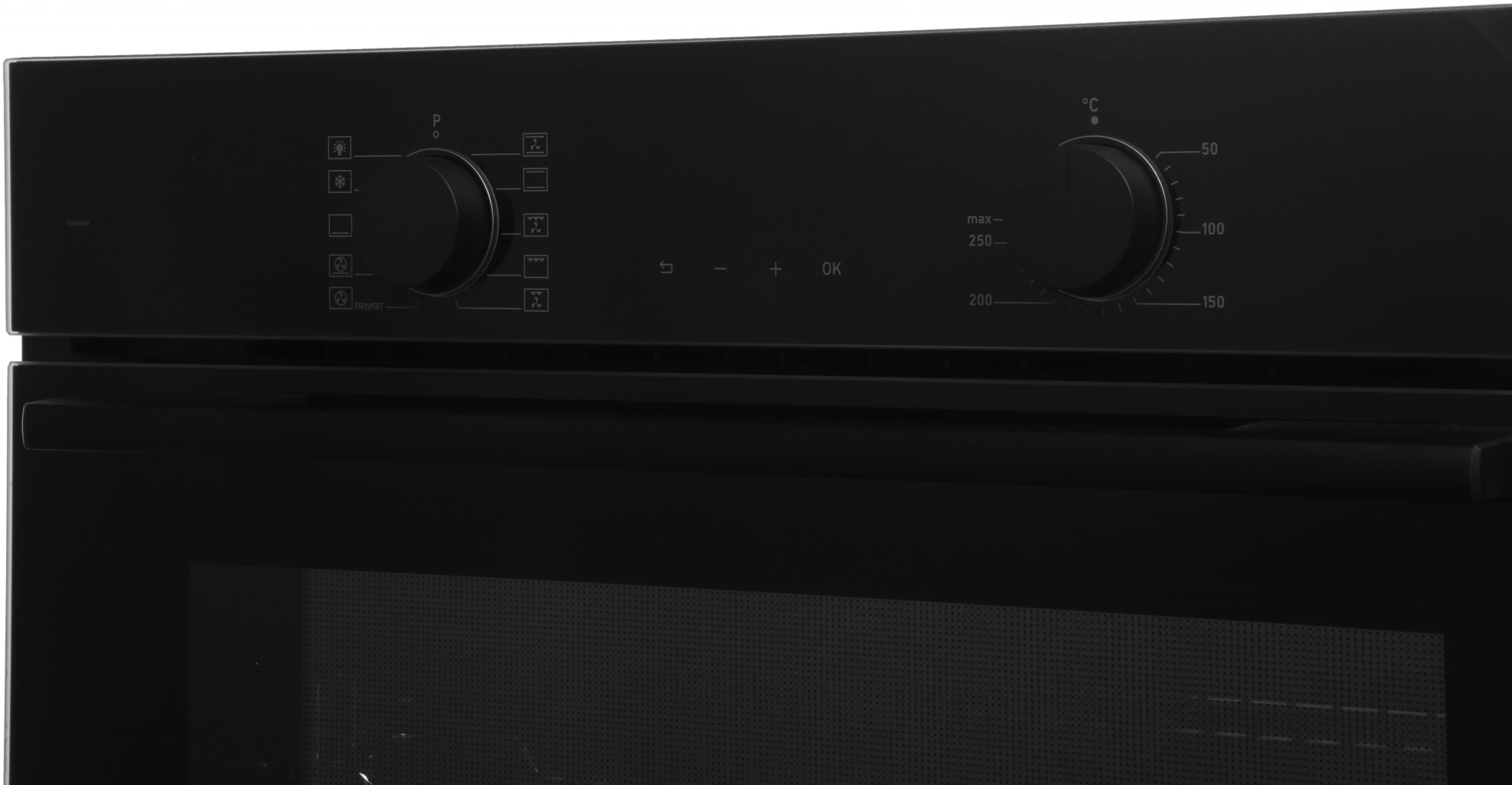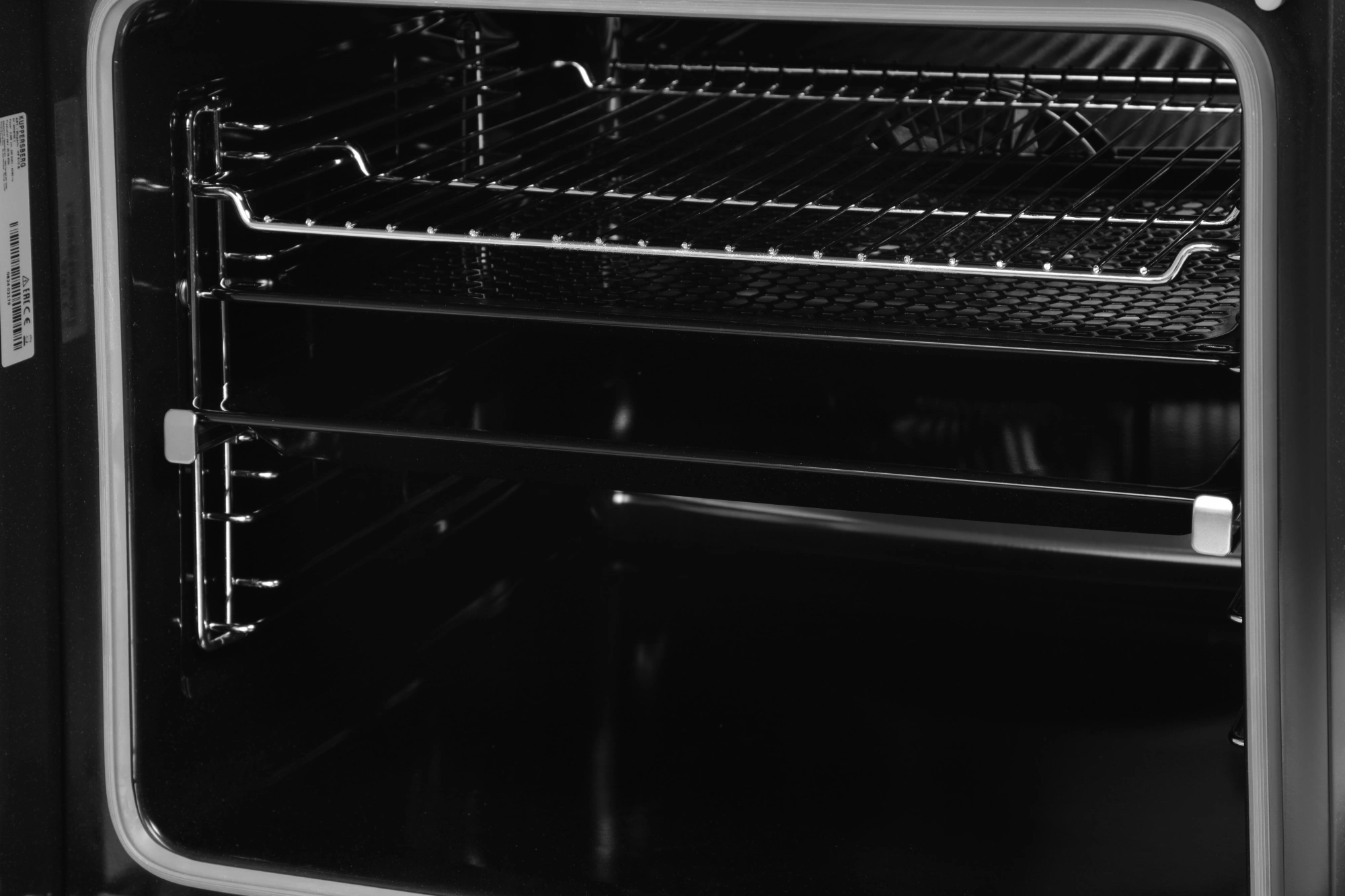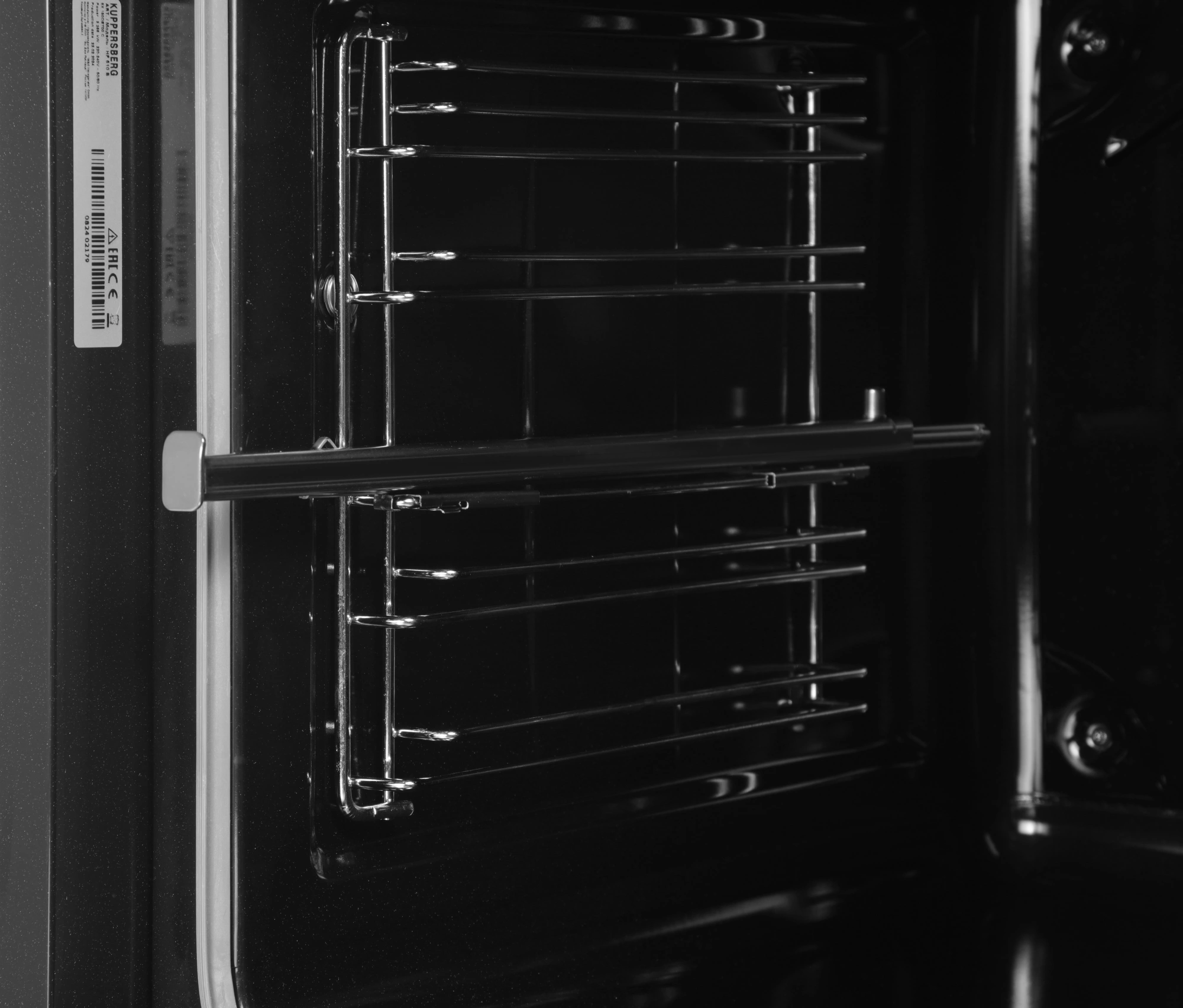 вентилятор охлаждения, доводчик двери, полностью стеклянная внутренняя поверхность дверцы духовки, телескопические направляющие, утапливаемые переключатели