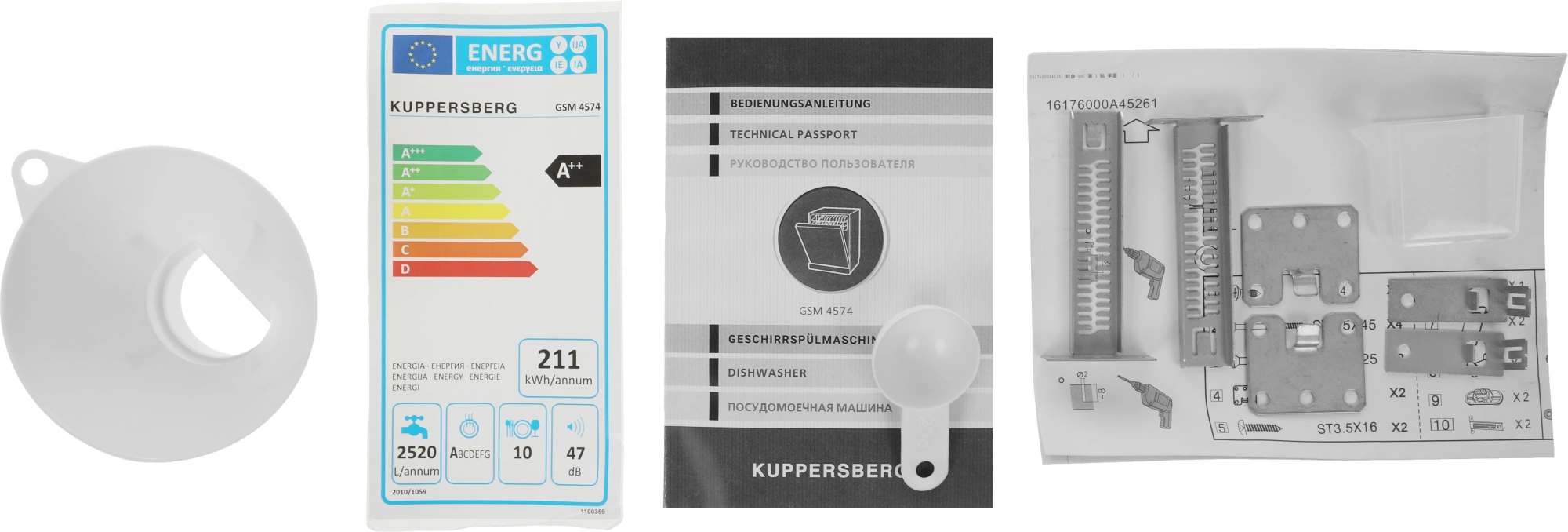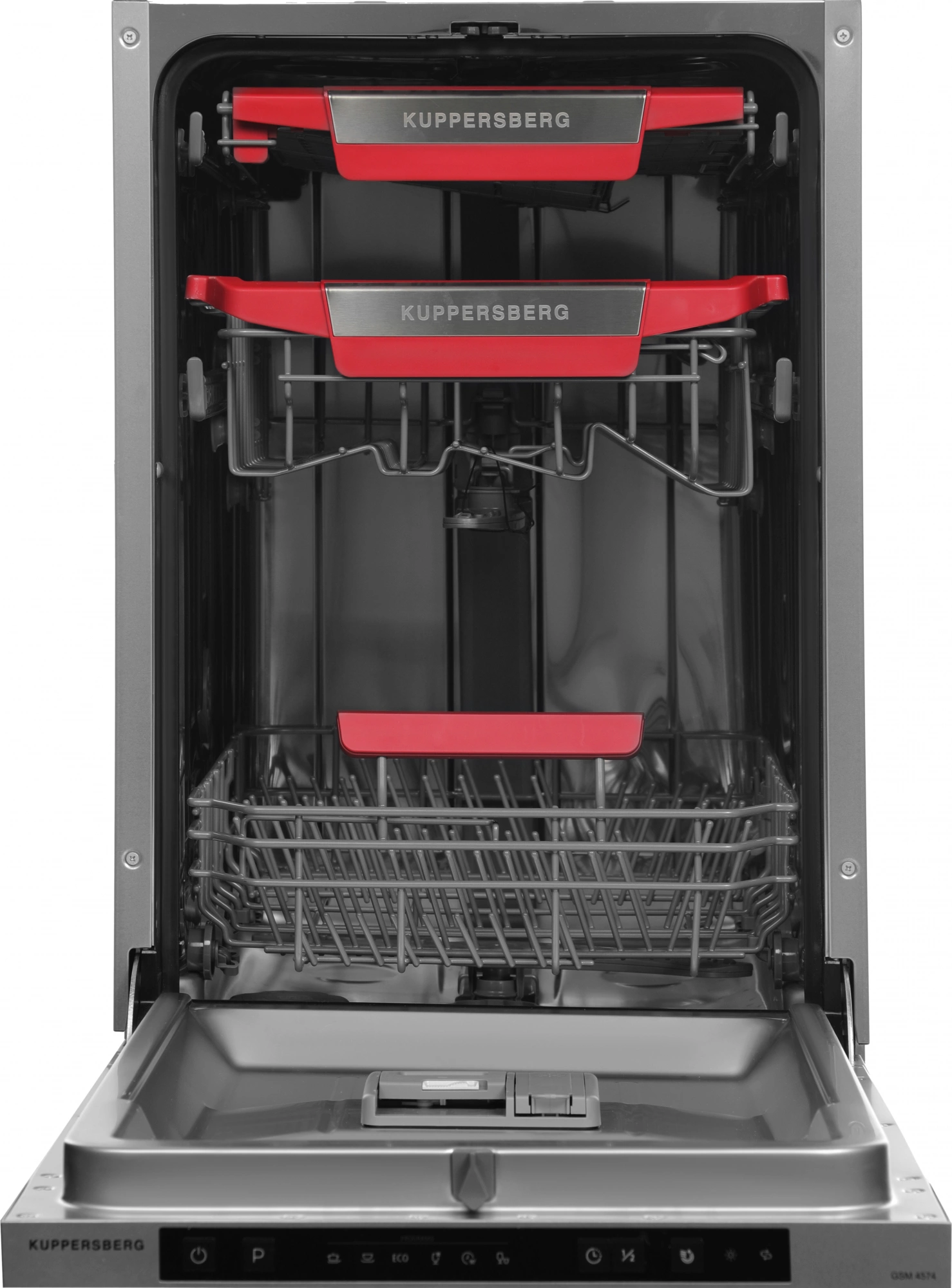 корзина для столовых приборов, полки для кружек, разбрызгиватель над верхней корзиной