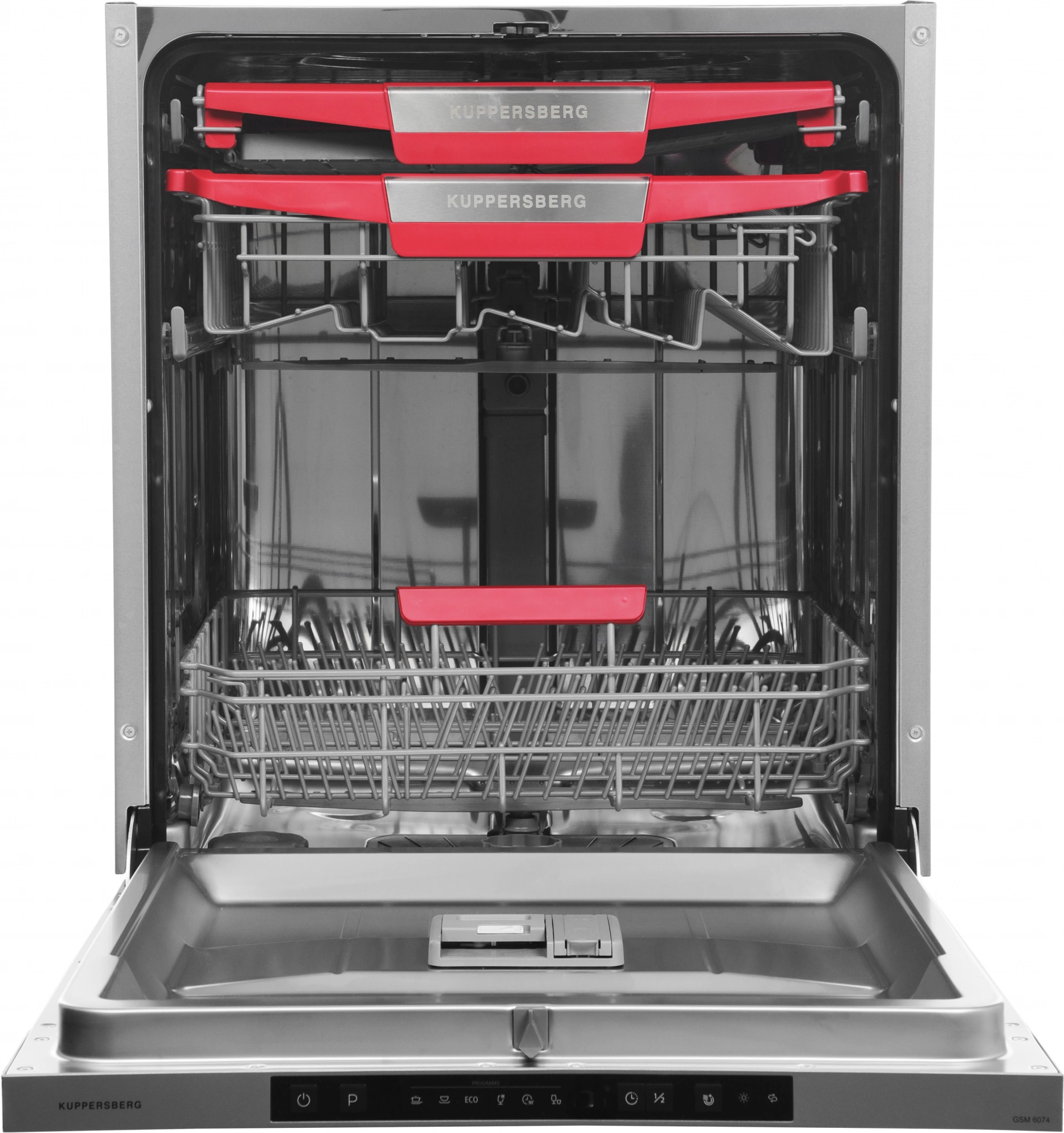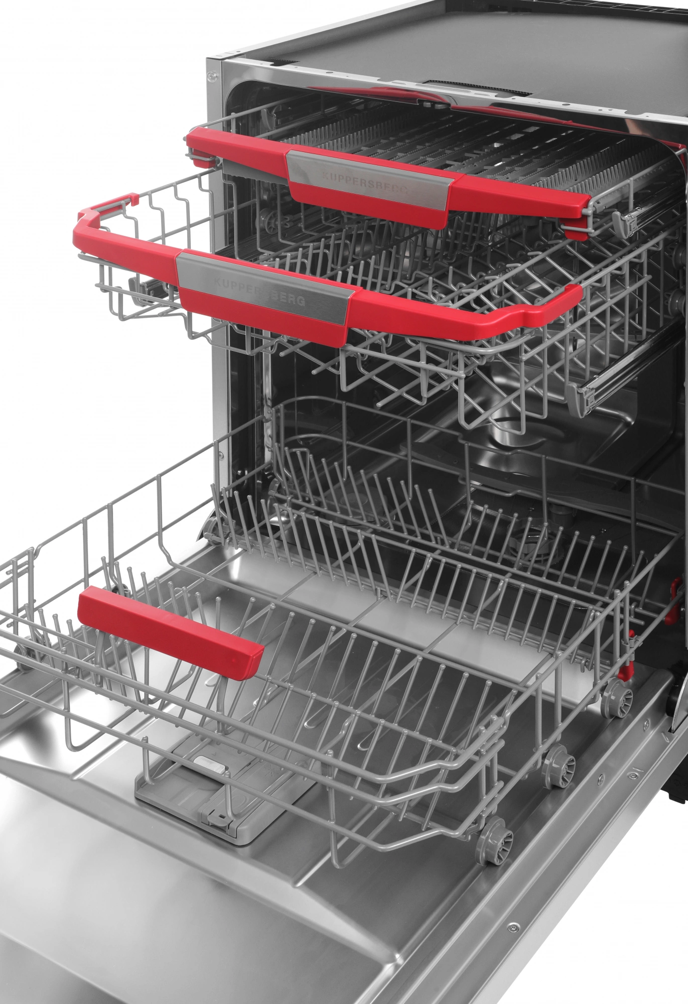 корзина для столовых приборов, полки для кружек, разбрызгиватель над верхней корзиной