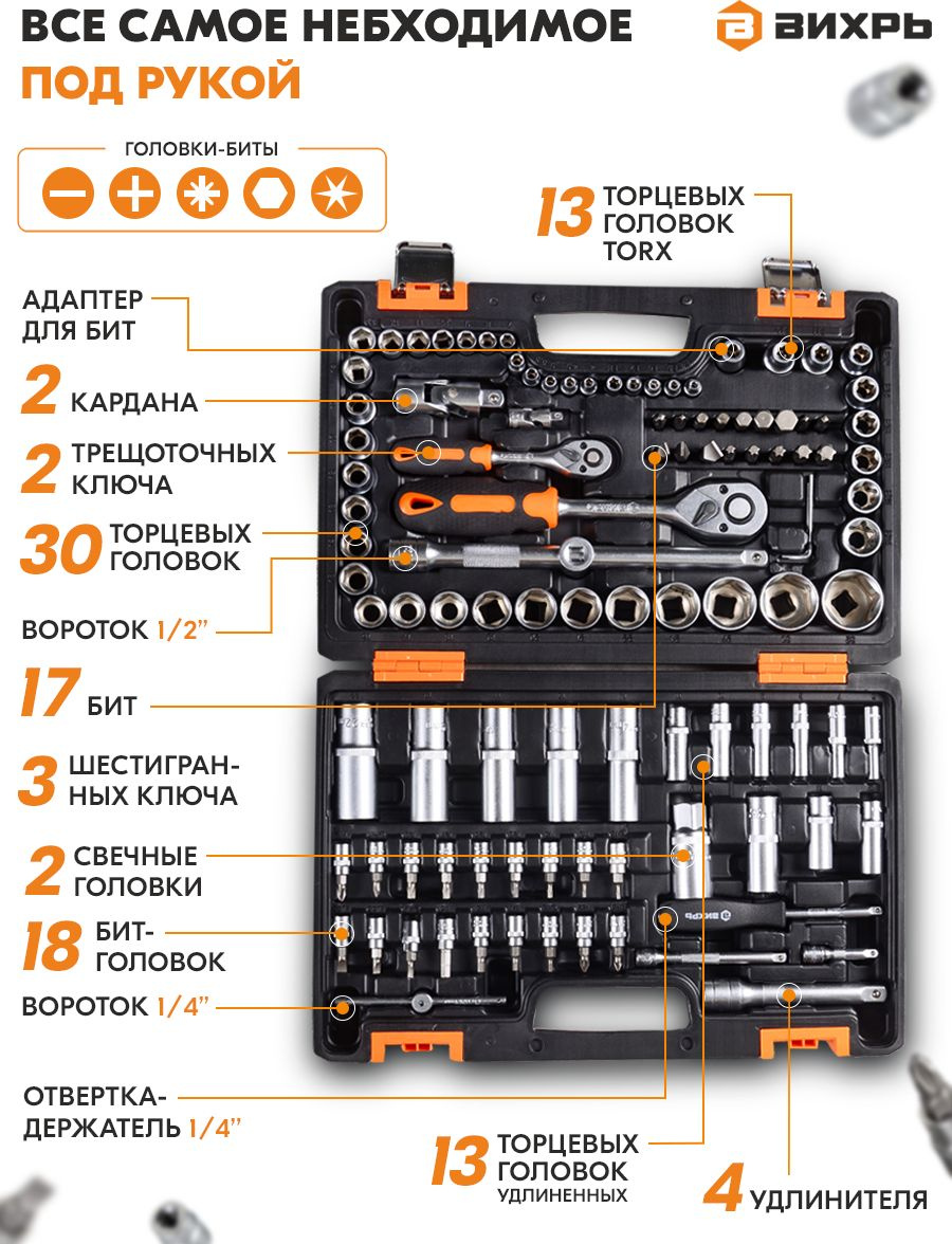 набор бит H/HEX (шестигранник), набор бит Ph (крест), набор бит Pz (крест), набор бит SL (шлиц), набор бит Torx