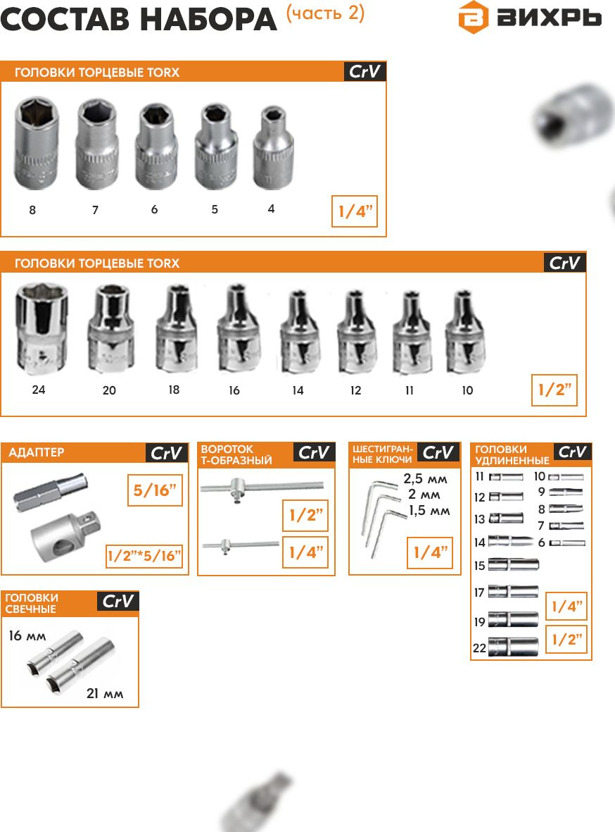 Головки торцевые: 10, 11, 12, 13, 14, 15, 16, 17, 18, 19, 20, 21, 22, 24, 27, 30, 32 мм