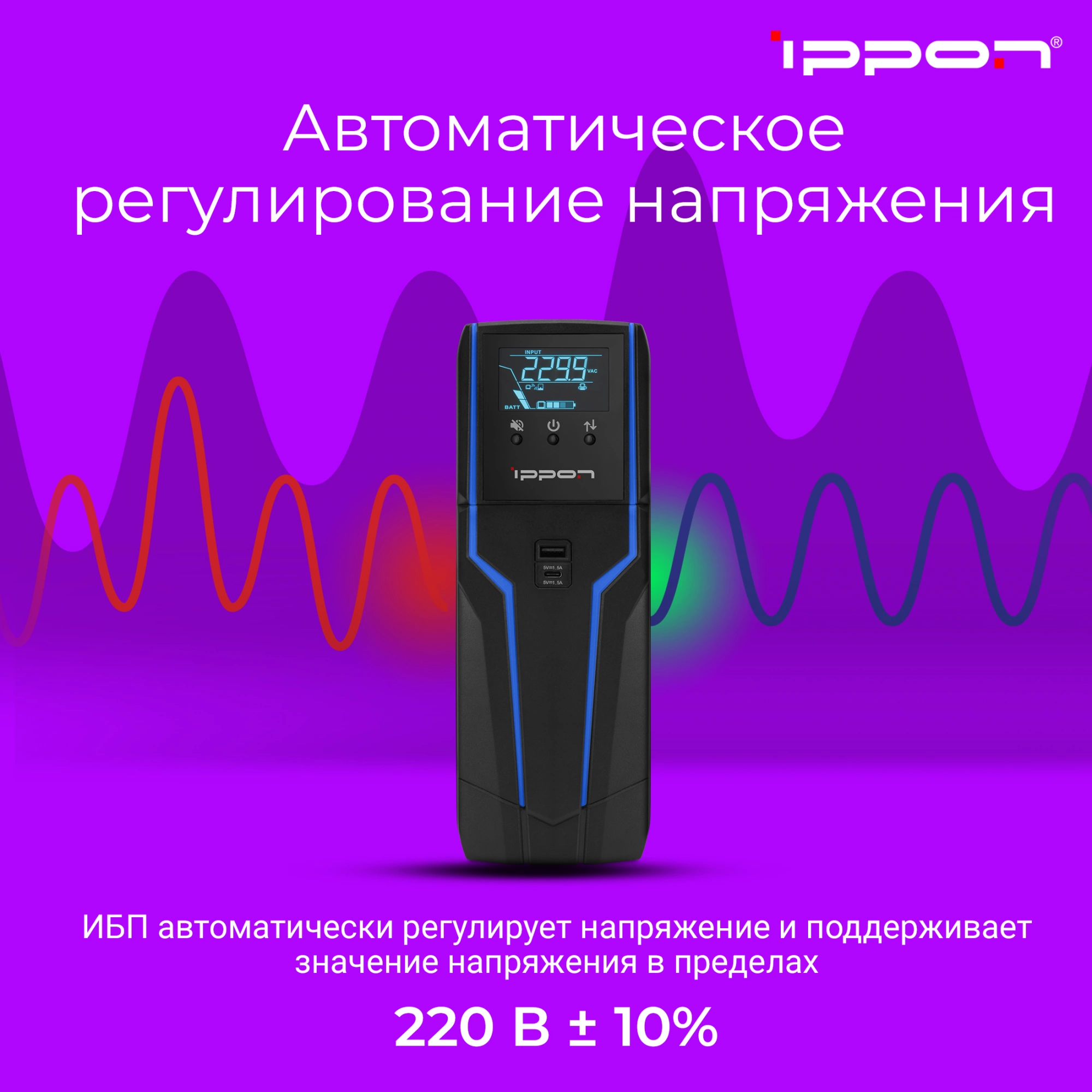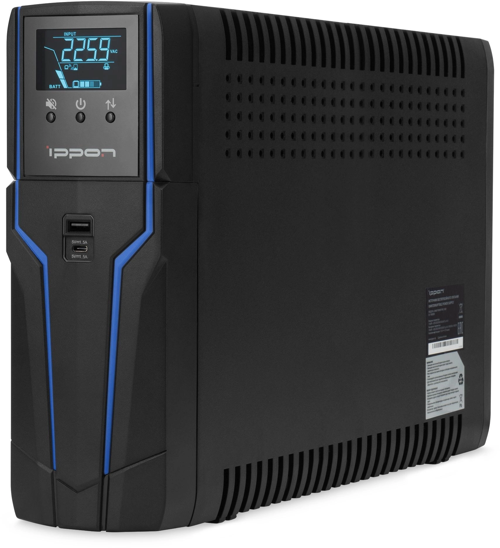 ЖК-экран с подсветкой, отображаемый цифровую величину входного и выходного напряжения, а также величину нагрузки и остаточной ёмкости батареи, пиктограммы индикации питания от сети, от батареи, режим регулятора, возникшая неисправность. Звуковая индикация режимов работы.