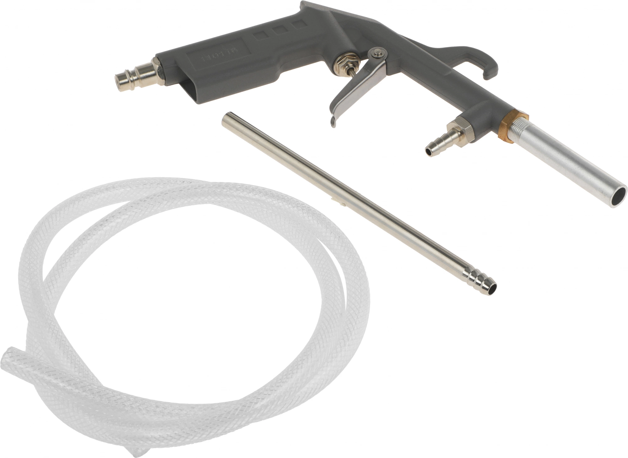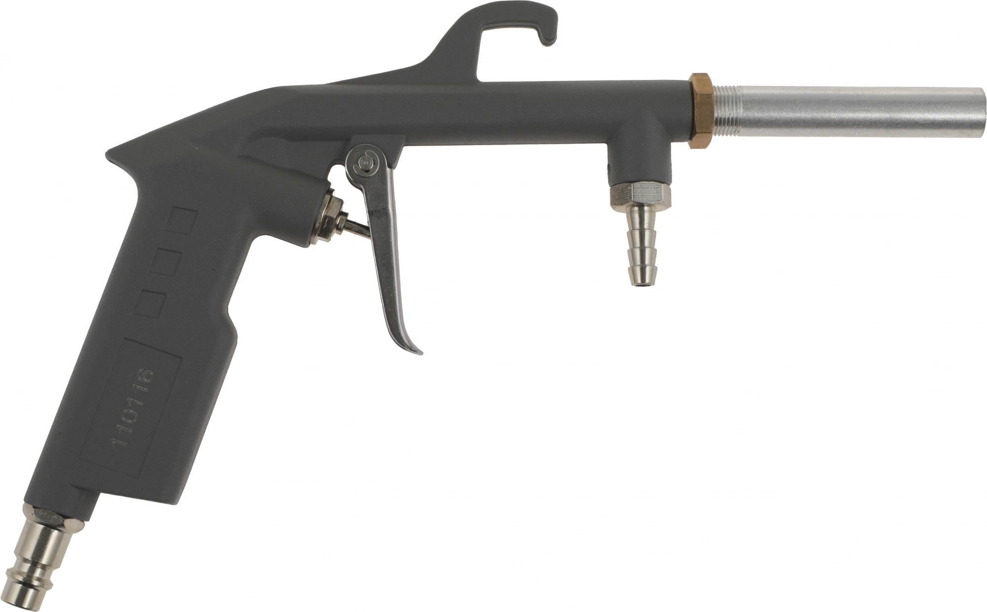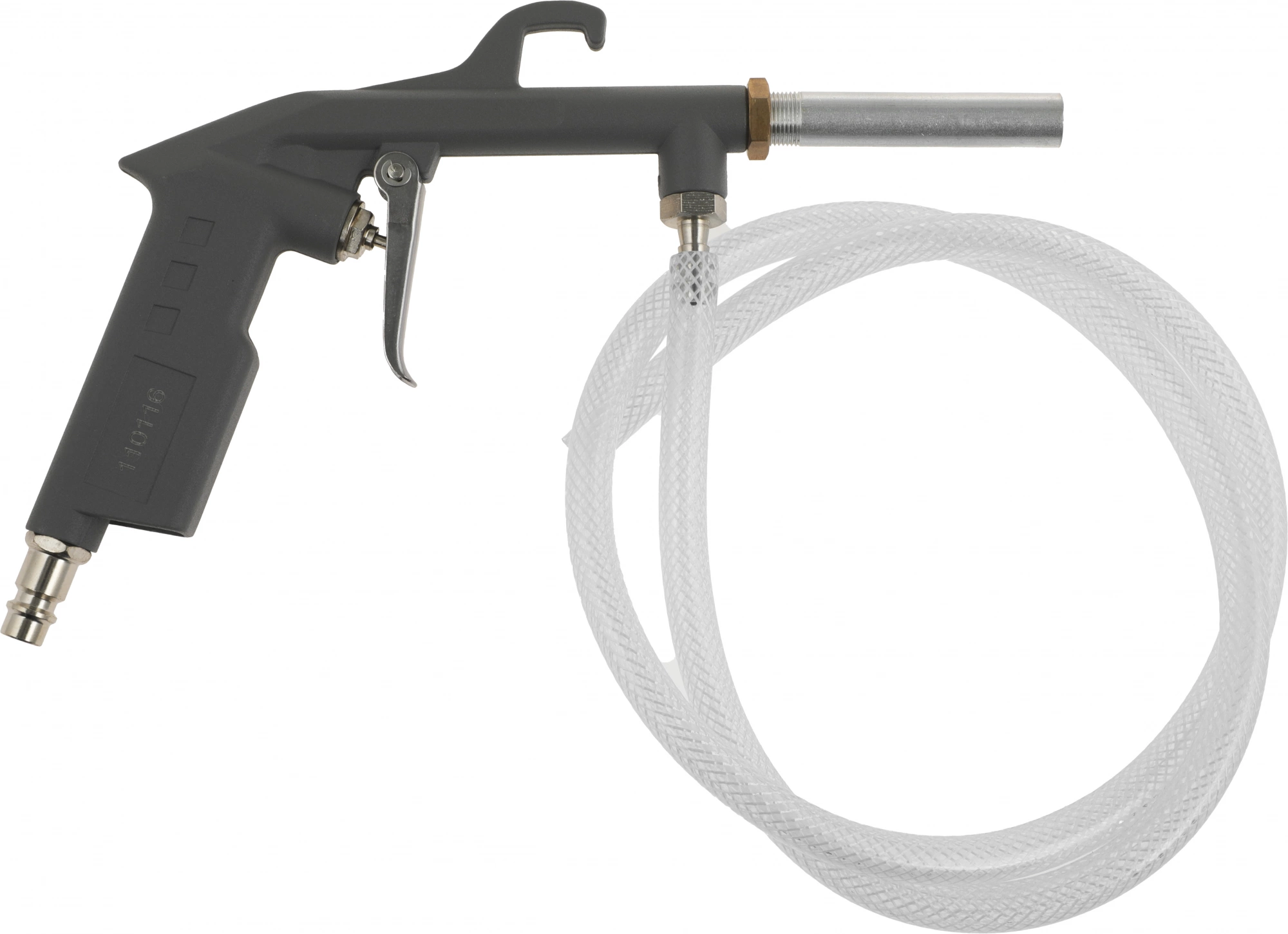 Пневмопистолет пескоструйный с шлангом. Предназначен для очистки поверхностей от грязи и ржавчины, а также снятия старых покрытий струей песка. Оснащен выносным шлангом, что позволяет использовать емкости с любым объемом абразивного вещества на значительном расстоянии от точки подключения.