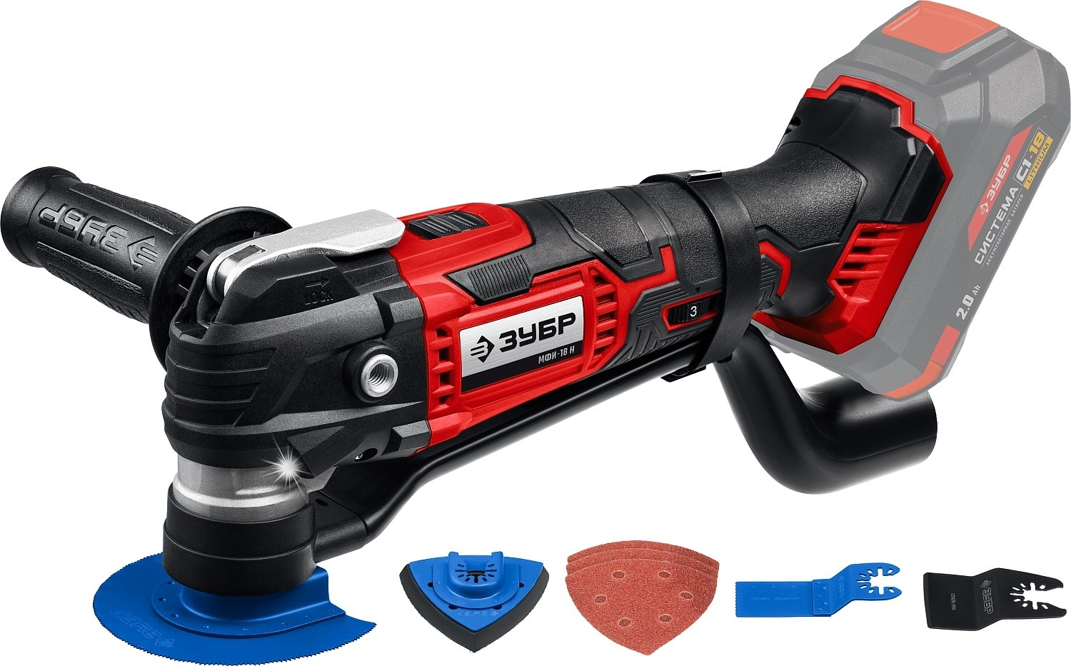 Насадка-шабер, насадка прямая пильная универсальная, подошва шлифовальная, бумага шлифовальная - 3 шт., полотно сегментное, патрубок пылеотводный, хомут пылеотводного патрубка.