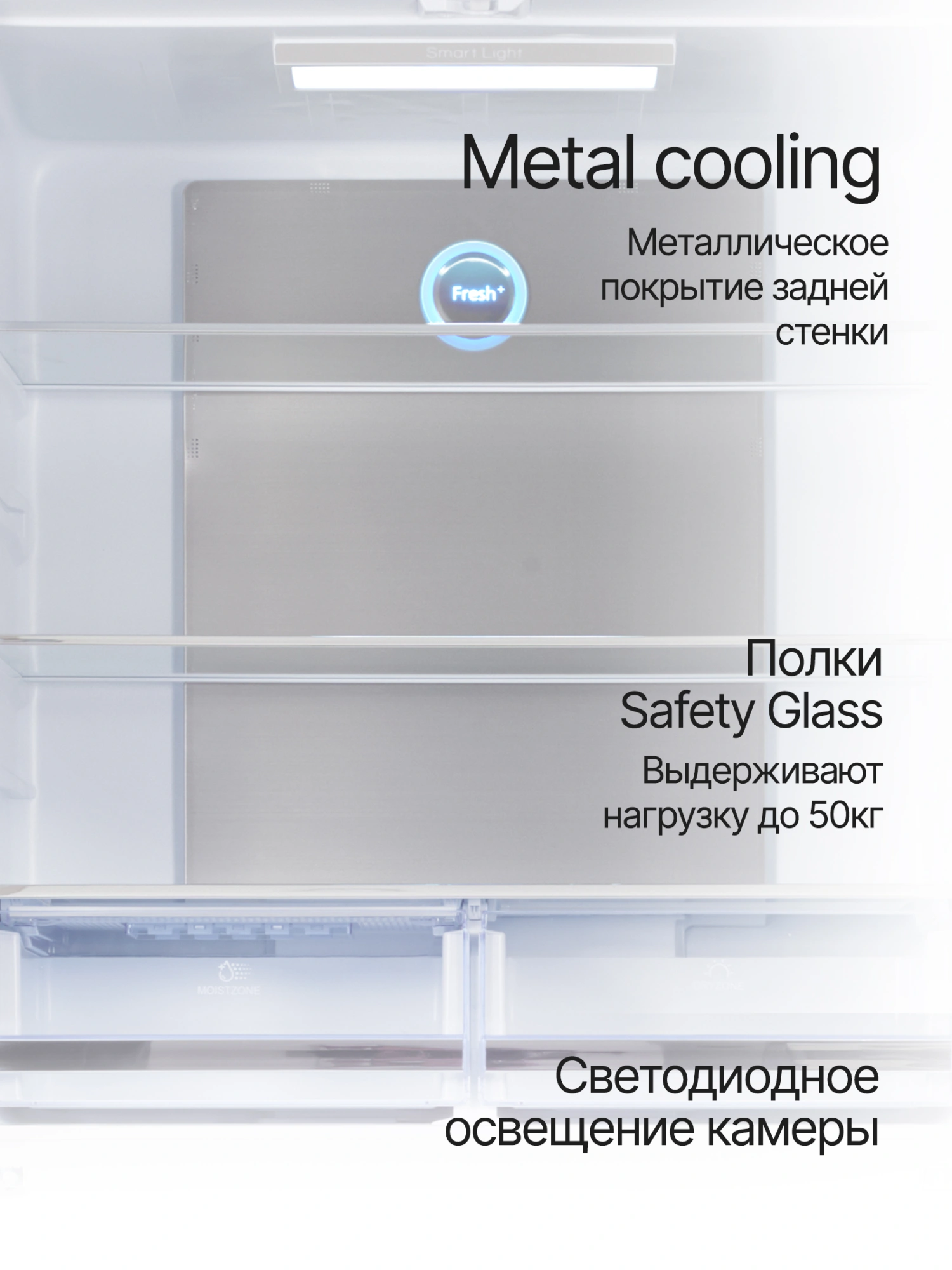 Светодиодное освещение камеры, Фасад стеклянный, Полка для яиц - 2шт