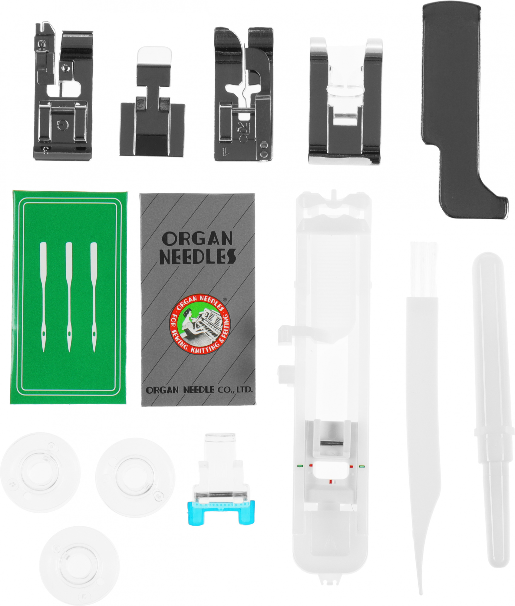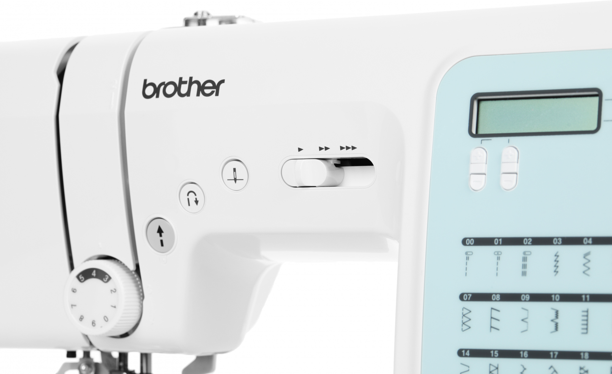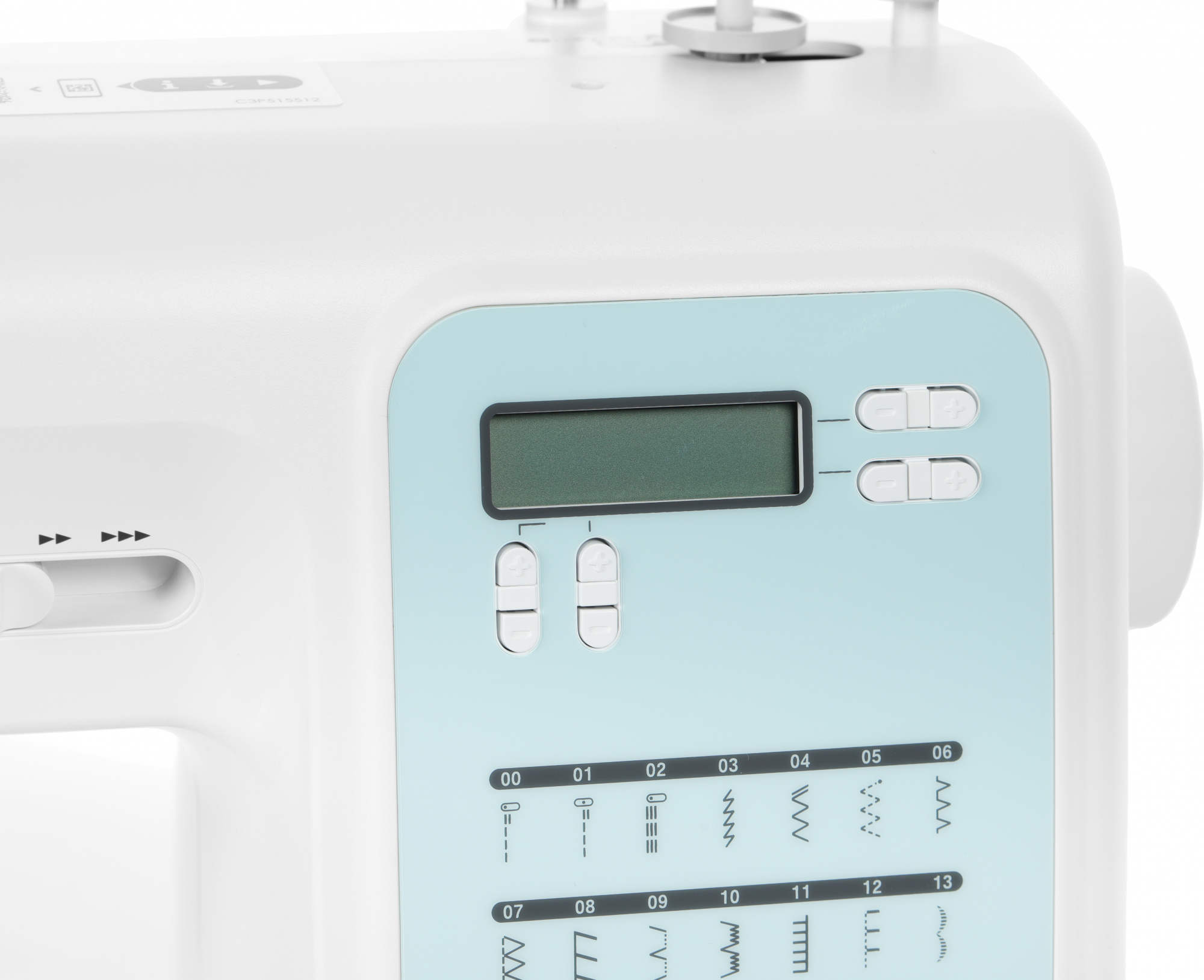 реверс, регулировка длины строчки, регулировка скорости шитья, регулировка уровня прижимной лапки, регулировка ширины зигзага, шитье двойной иглой