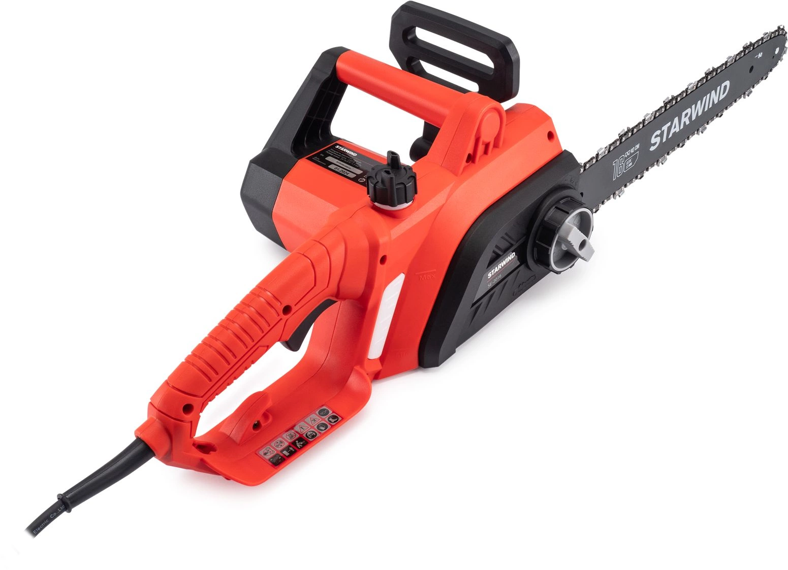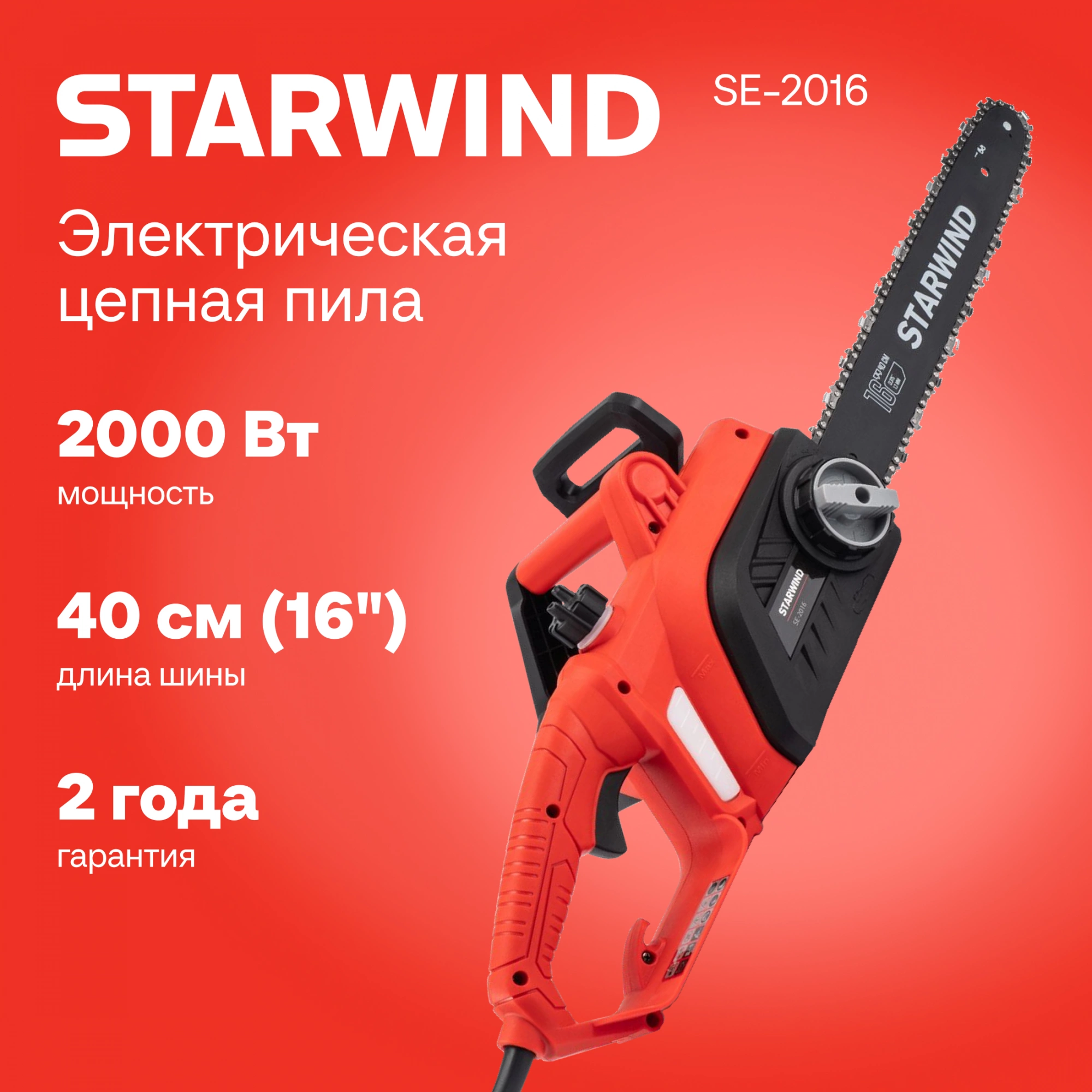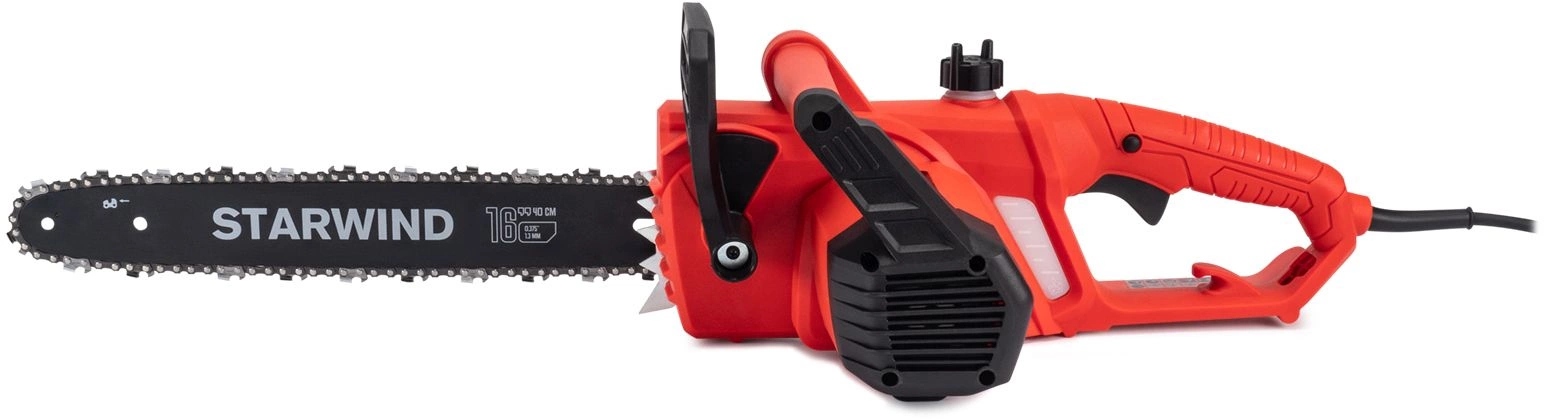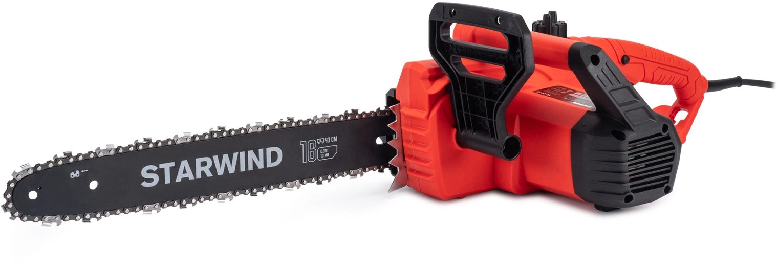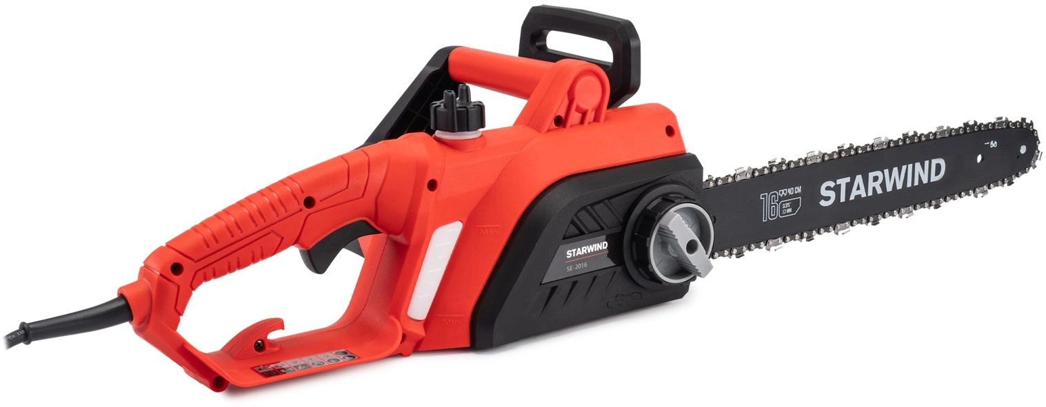 Starwind SE-2016 оснащен электрическим мотором мощностью 2000 Вт. Мотор имеет медную обмотку и поперечное расположение относительно шины – это позволяет упростить конструкцию и повысить надежность инструмента.