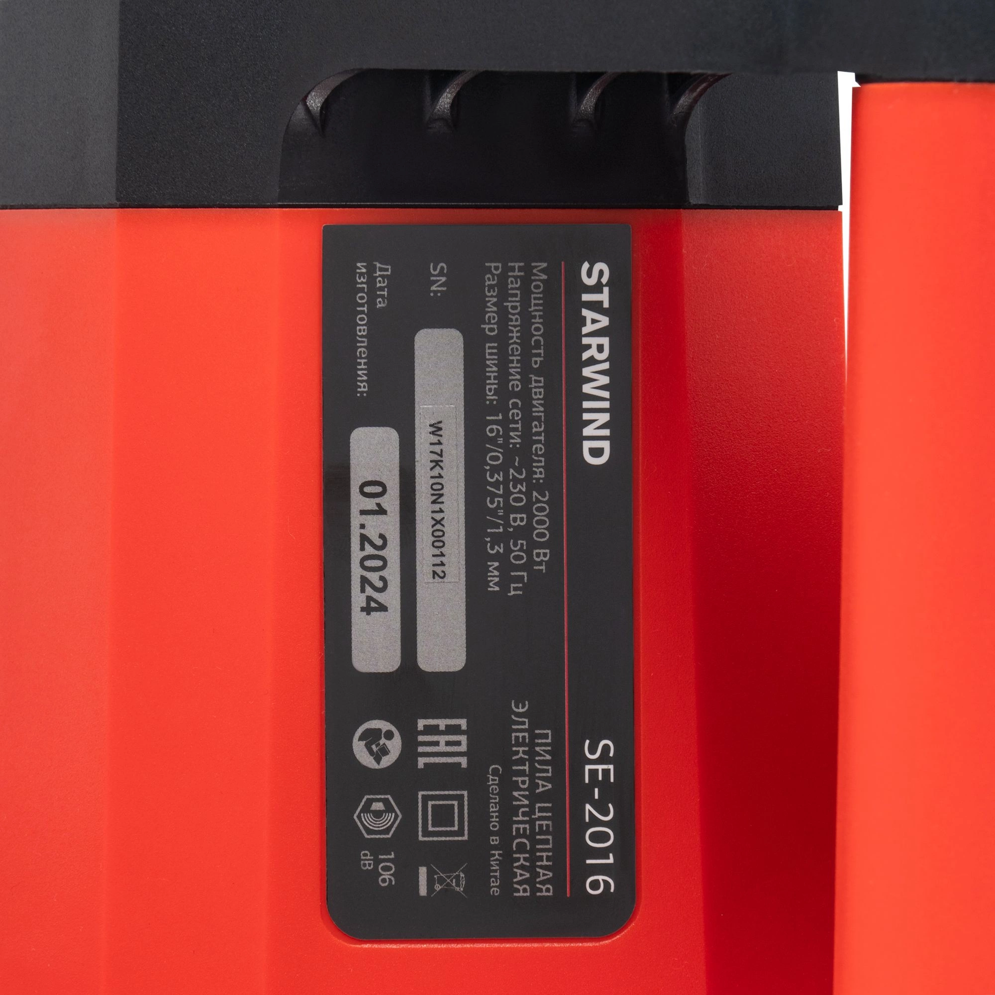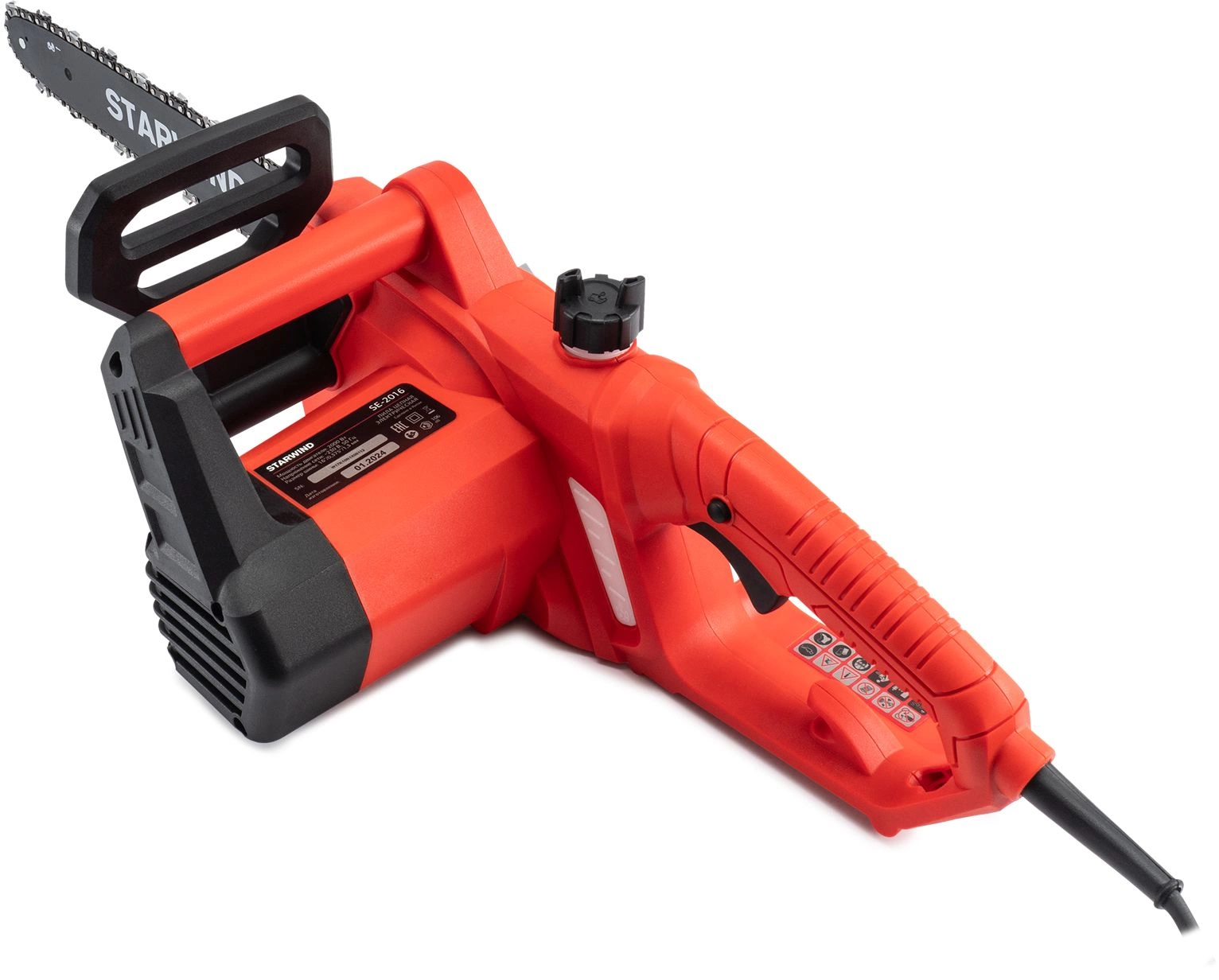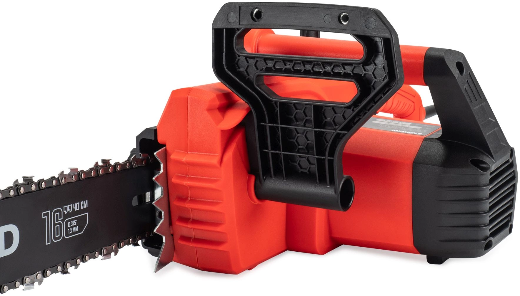 Starwind SE-2016 оснащен электрическим мотором мощностью 2000 Вт. Мотор имеет медную обмотку и поперечное расположение относительно шины – это позволяет упростить конструкцию и повысить надежность инструмента.