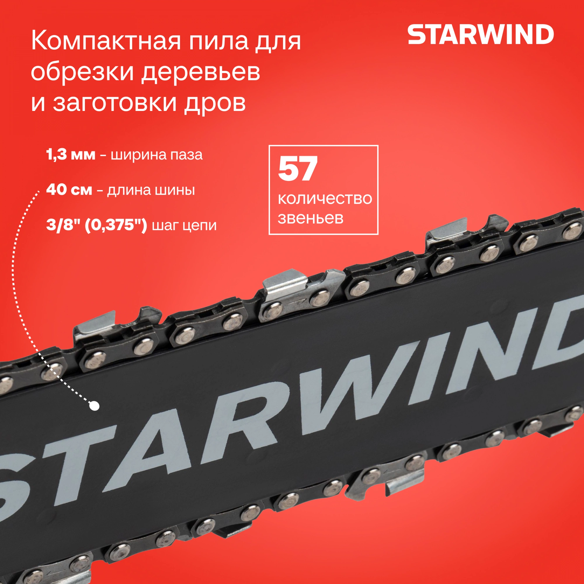 Благодаря пильной шине длиной 16 дюймов (40 см) достигается оптимальный баланс между маневренностью и производительностью, позволяя вам обрабатывать деревья различных размеров. Система бесключевого натяжения цепи упрощает работу и позволяет быстро подтянуть цепь без использования специальных ключей.