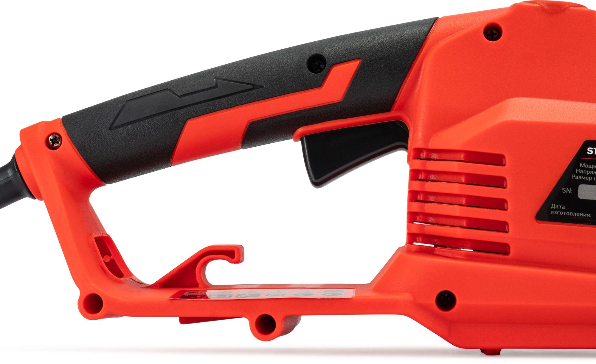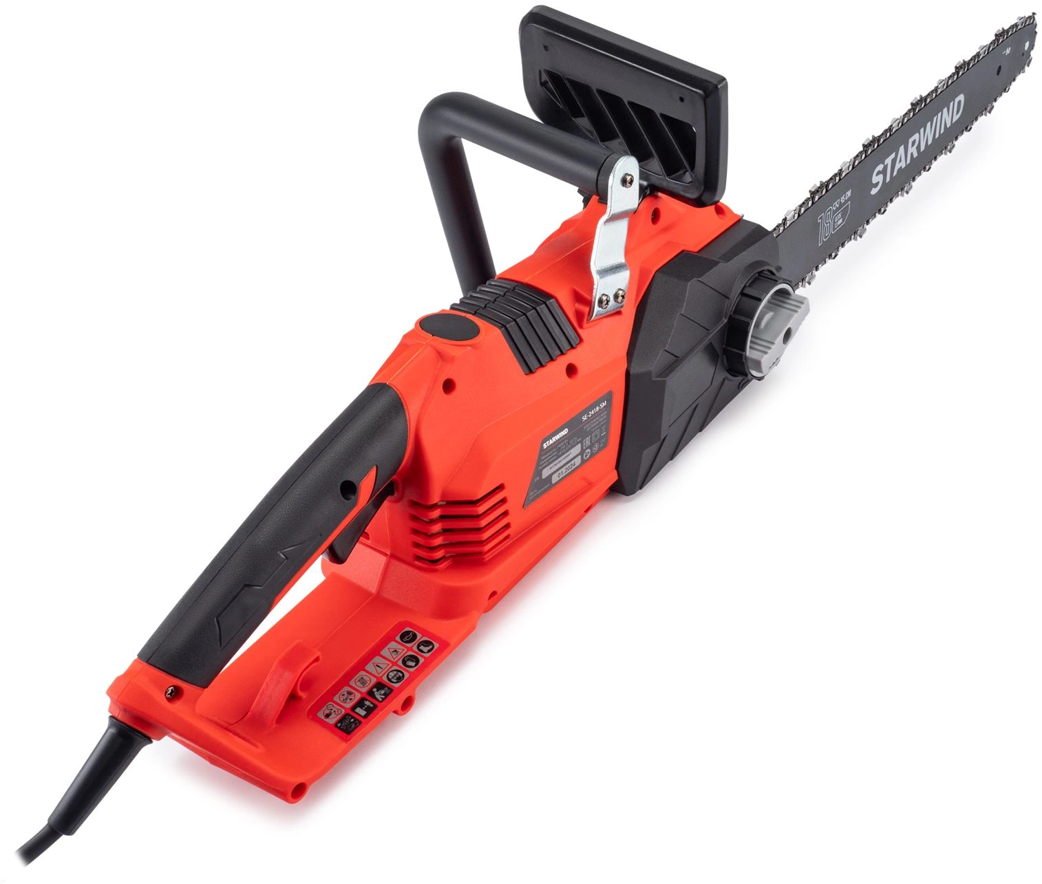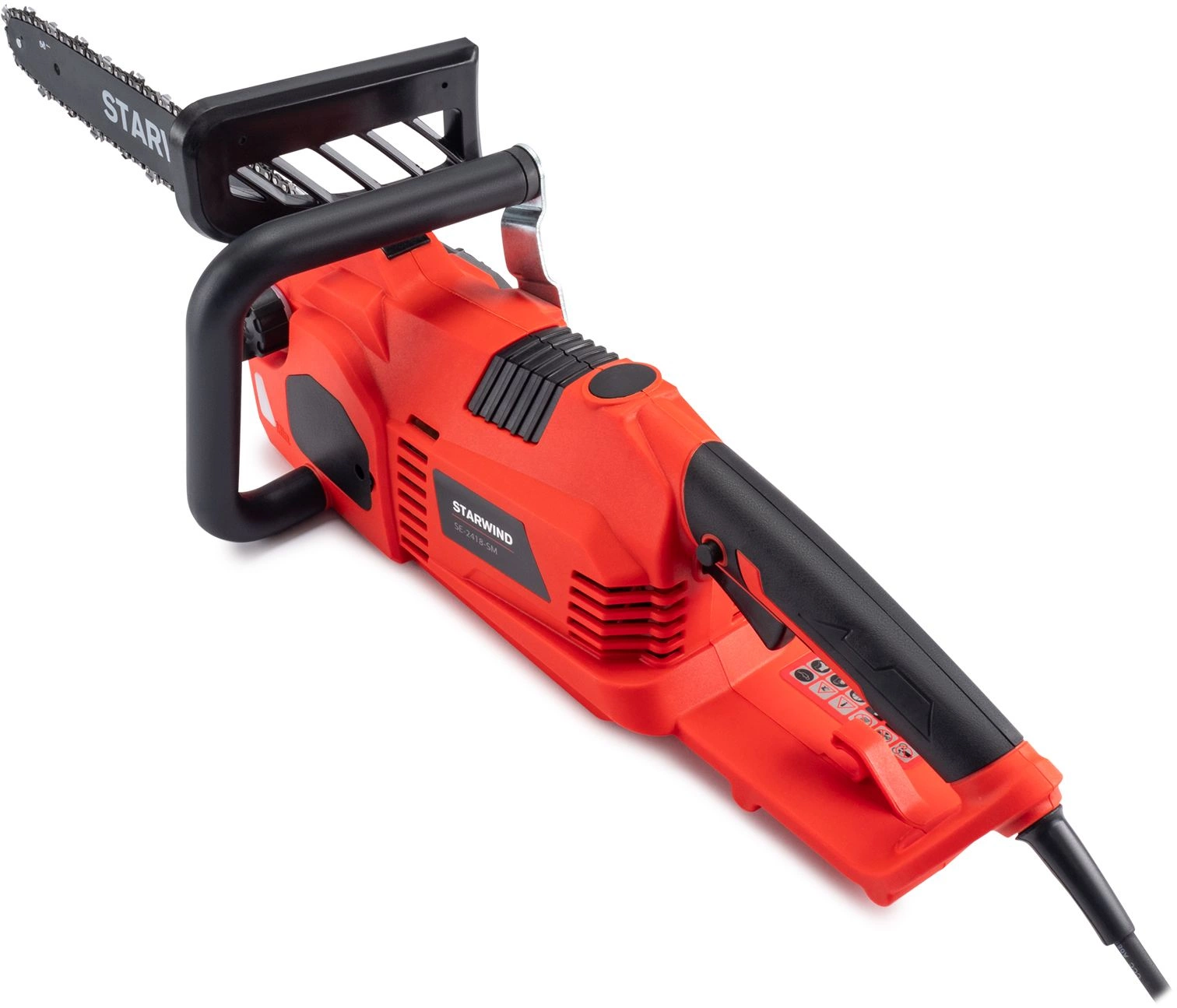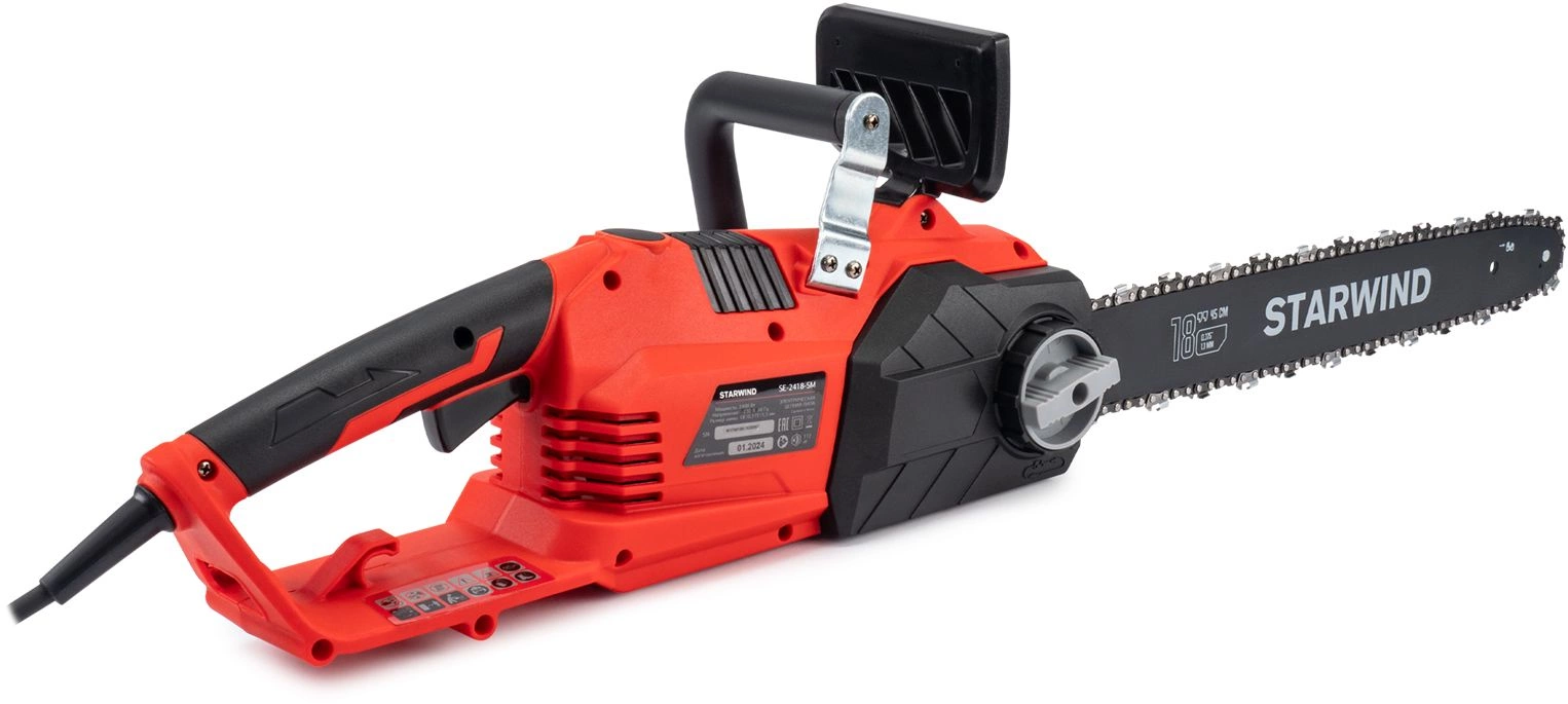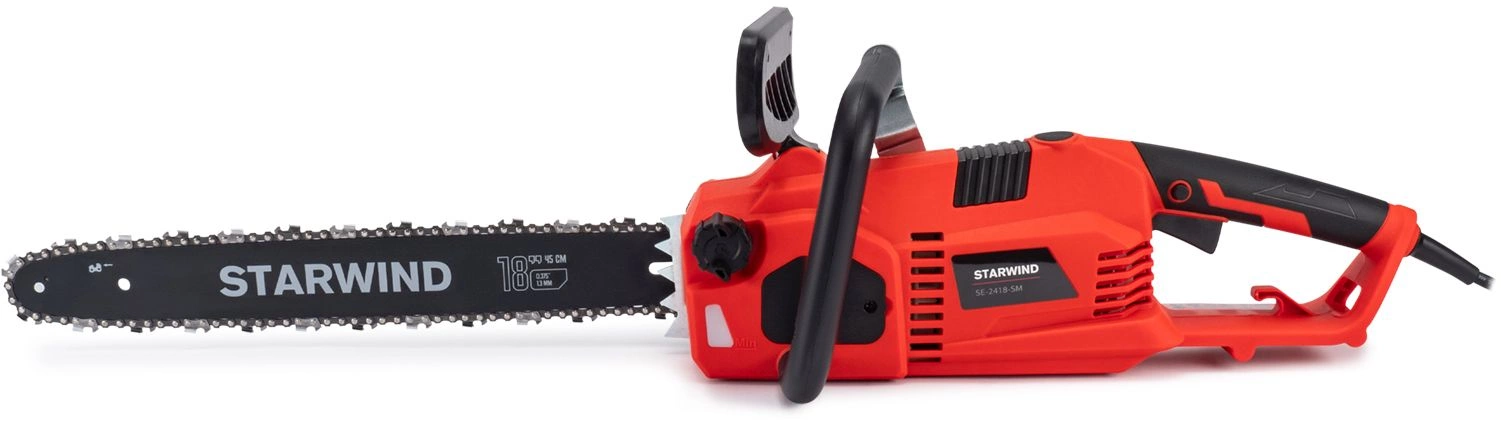 Starwind SE-2418-SM оснащен электрическим мотором мощностью 2400 Вт. Мотор имеет медную обмотку и продольное расположение относительно шины – это повышает надежность инструмента и делает его эксплуатацию более комфортной для работы в труднодоступных местах.