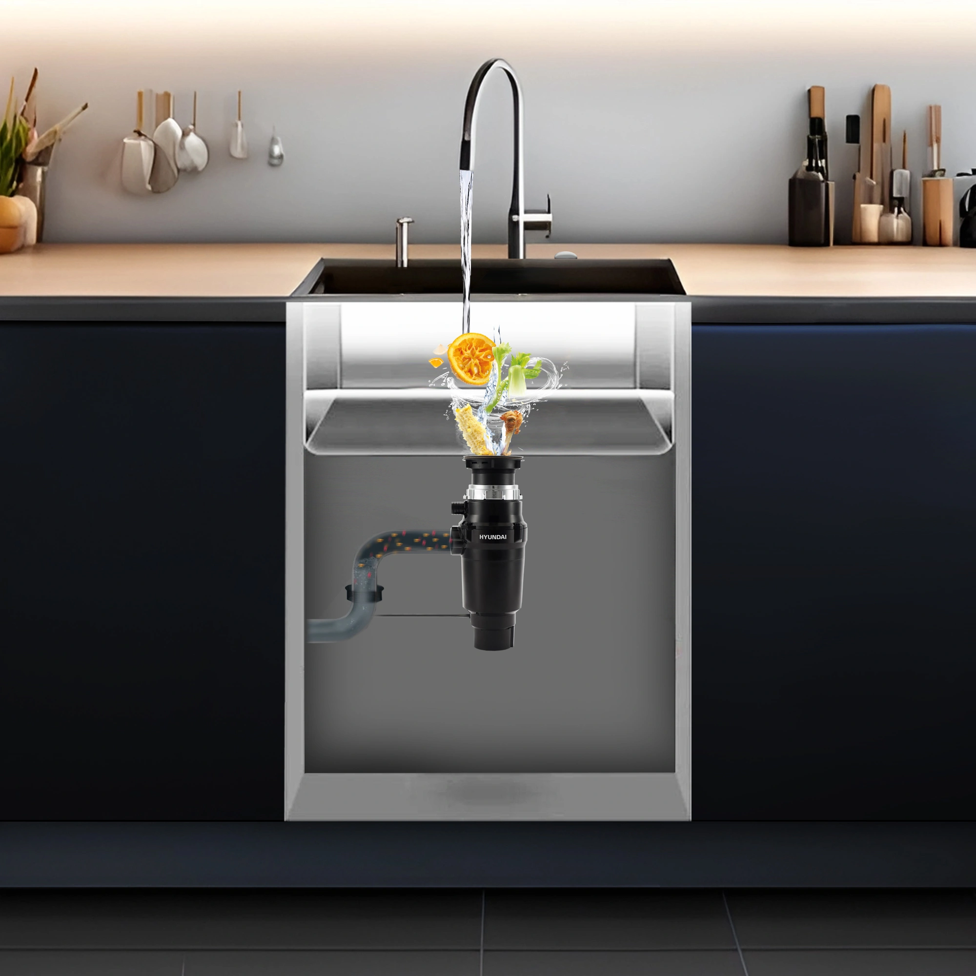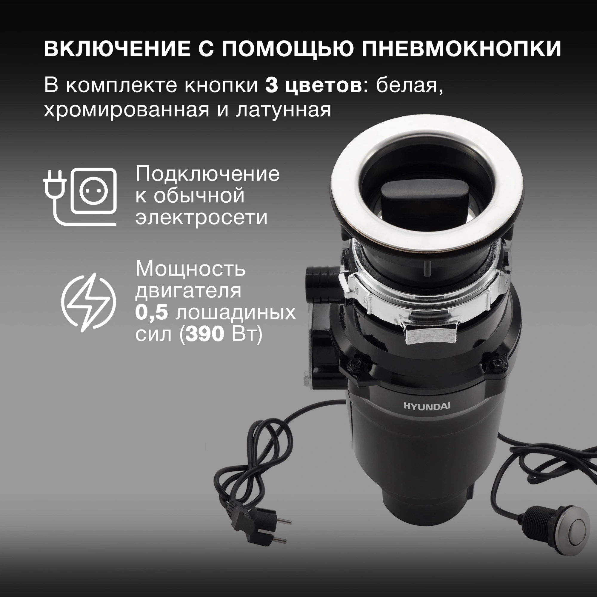Измельчитель пищевых отходов Hyundai HFWD 10390 поможет навсегда забыть о неприятном запахе из мусорного ведра и необходимости часто выносить мусор. Прибор быстро и эффективно перемалывает органический мусор (очистки овощей и фруктов, мелкие кости, остатки пищи), смешивает его с водой и удаляет в канализацию.