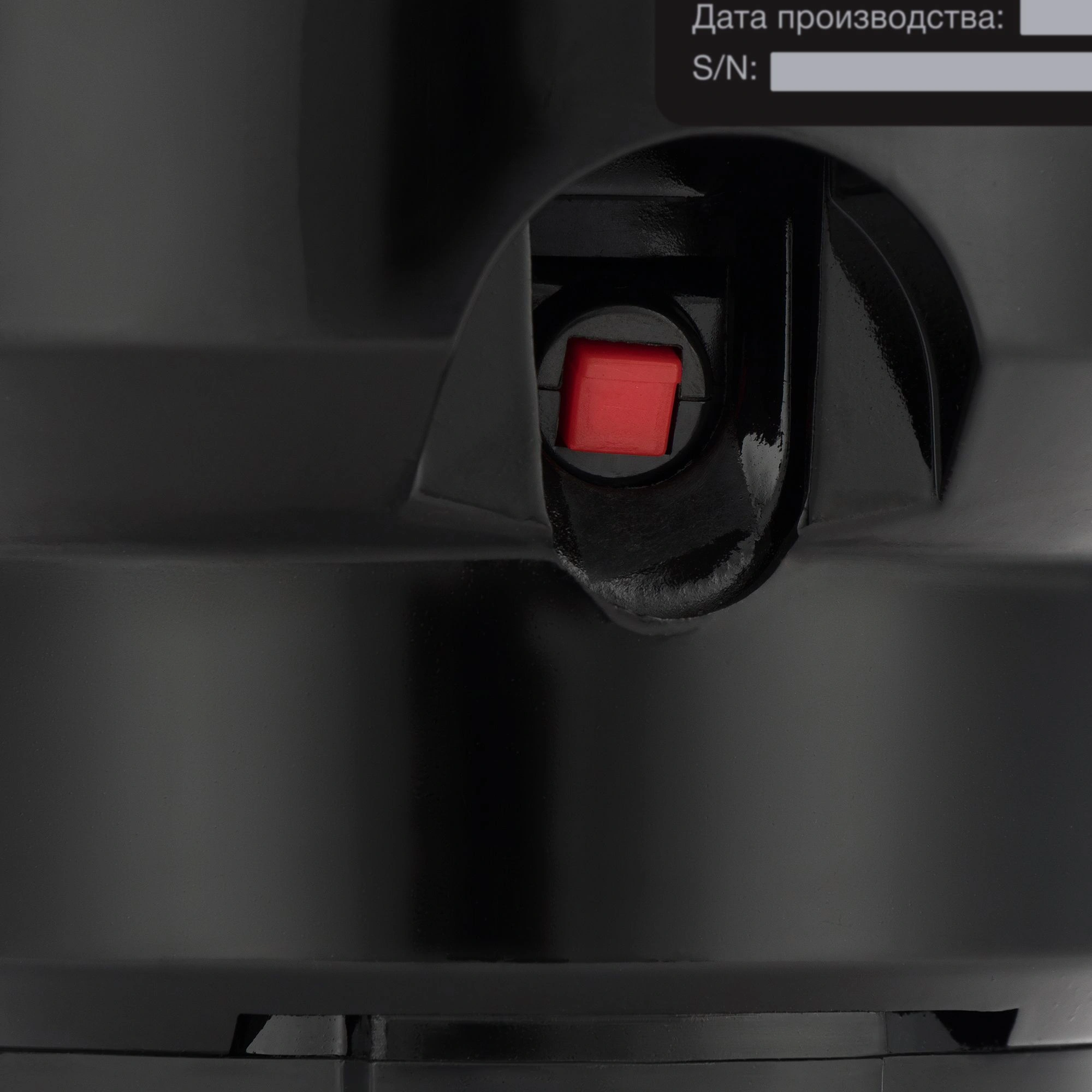 Автоблокировка. При попадании в камеру твердого постороннего предмета или при превышении объема отходов сработает защита двигателя. Блокировку можно снять, нажав кнопку на корпусе прибора.