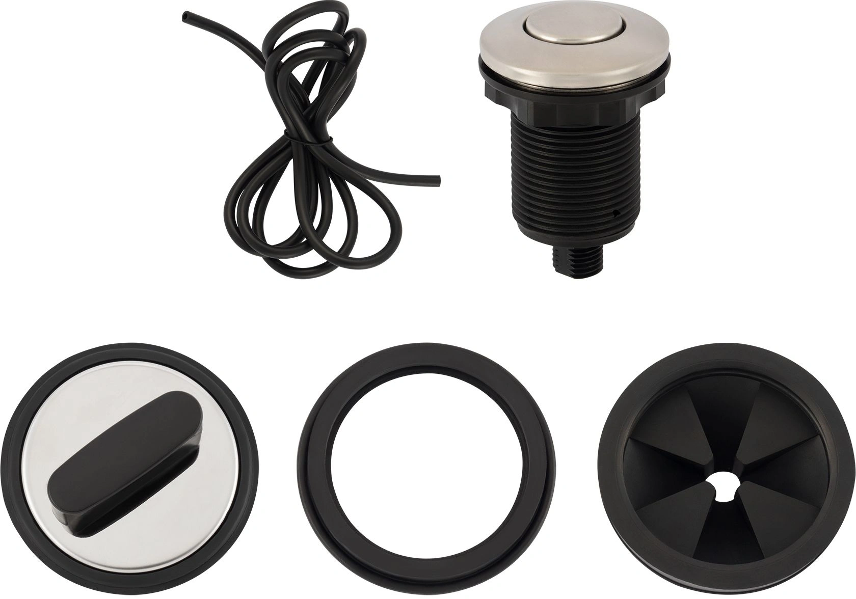 Пневмокнопка. Включение и отключение при помощи пневматической кнопки, встраиваемой в столешницу или мойку, полностью исключает риск поражения электрическим током. В комплекте идут три кнопки разного цвета: белая, серебристая и латунная.