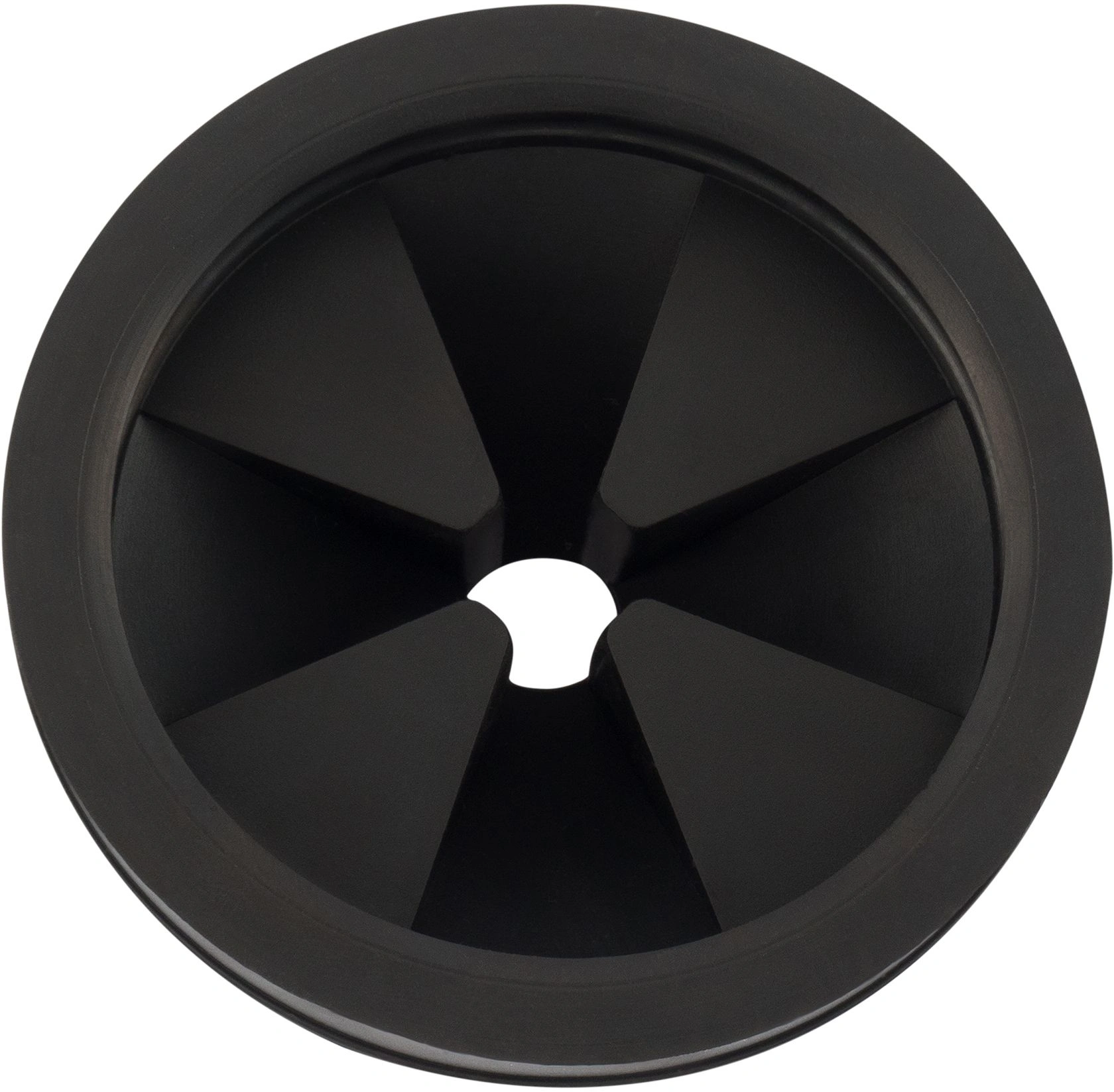 Защита. Устанавливаемая в горловине эластичная вставка с отверстием в центре препятствует попаданию в дробильную камеру столовых приборов и других крупных посторонних предметов, свободно пропуская воду.