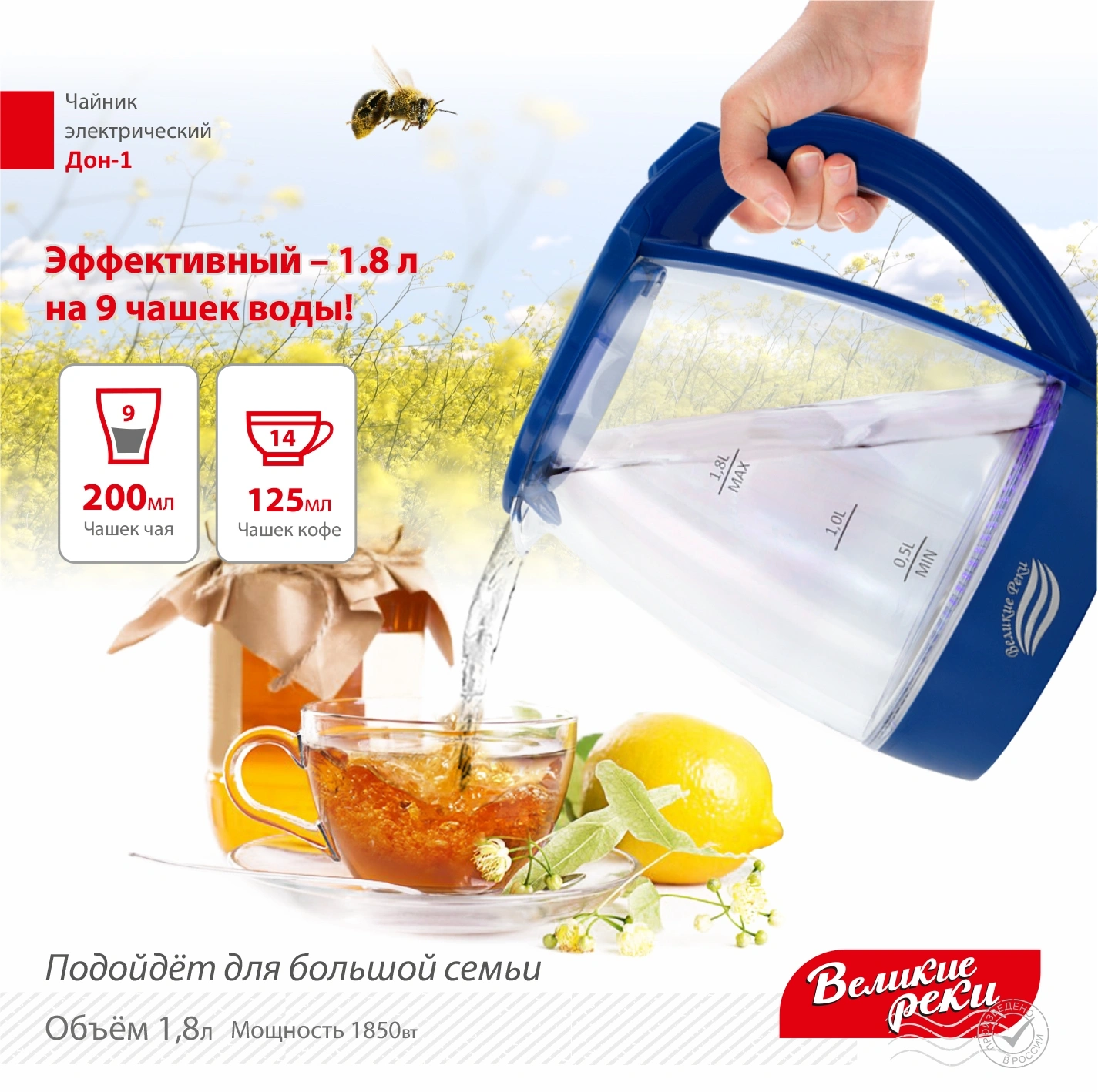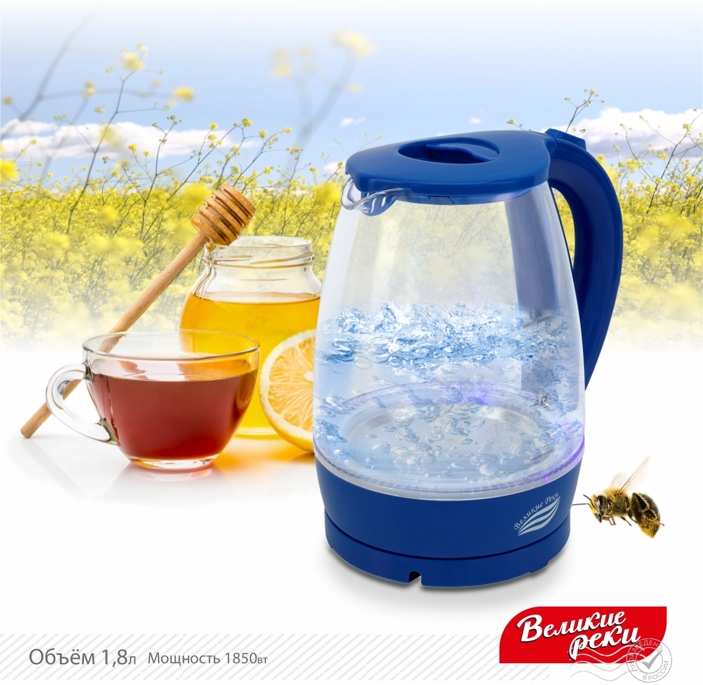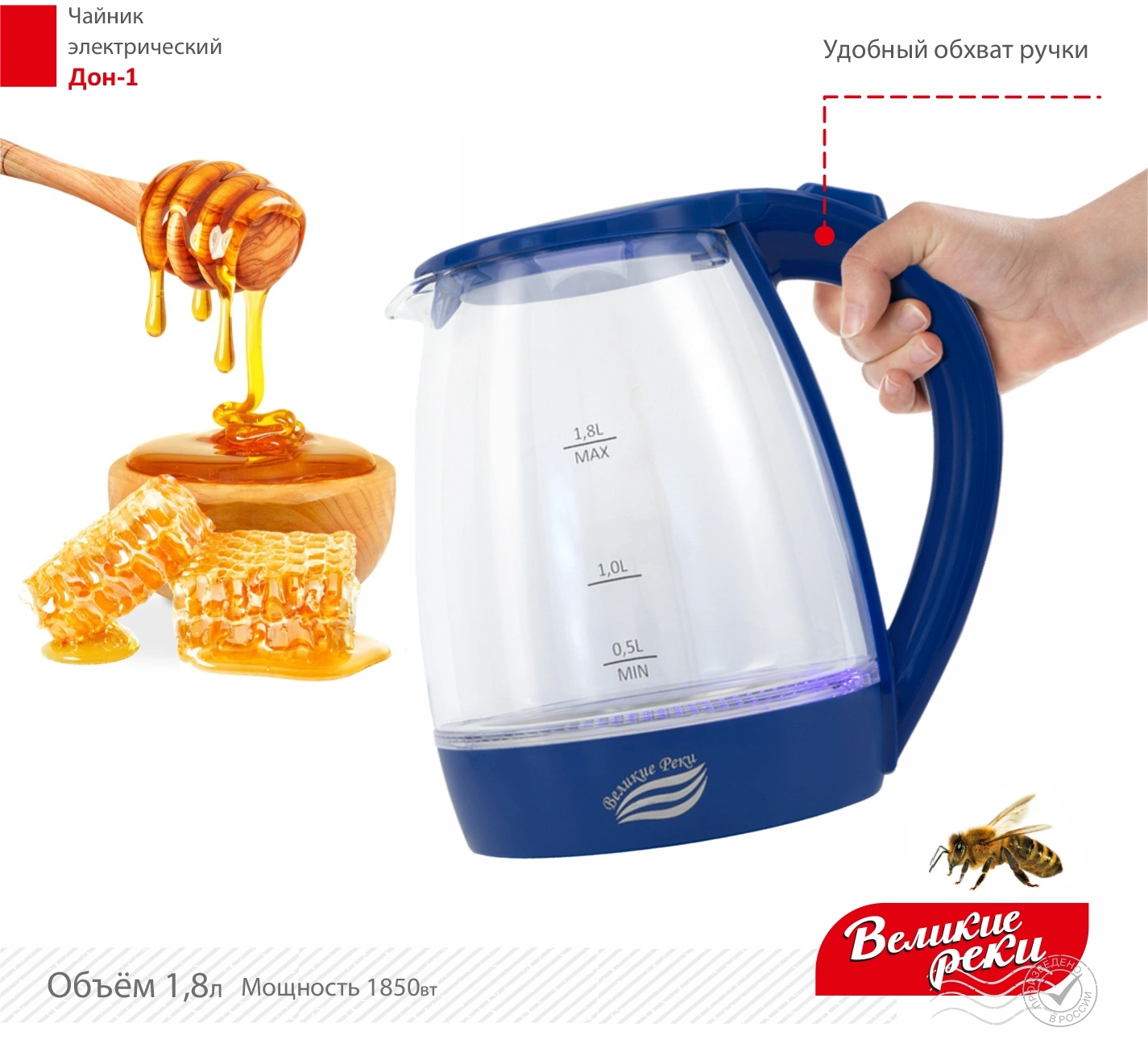 1.8л. 1850Вт прозрачный/синий корпус: стекло/пласт...