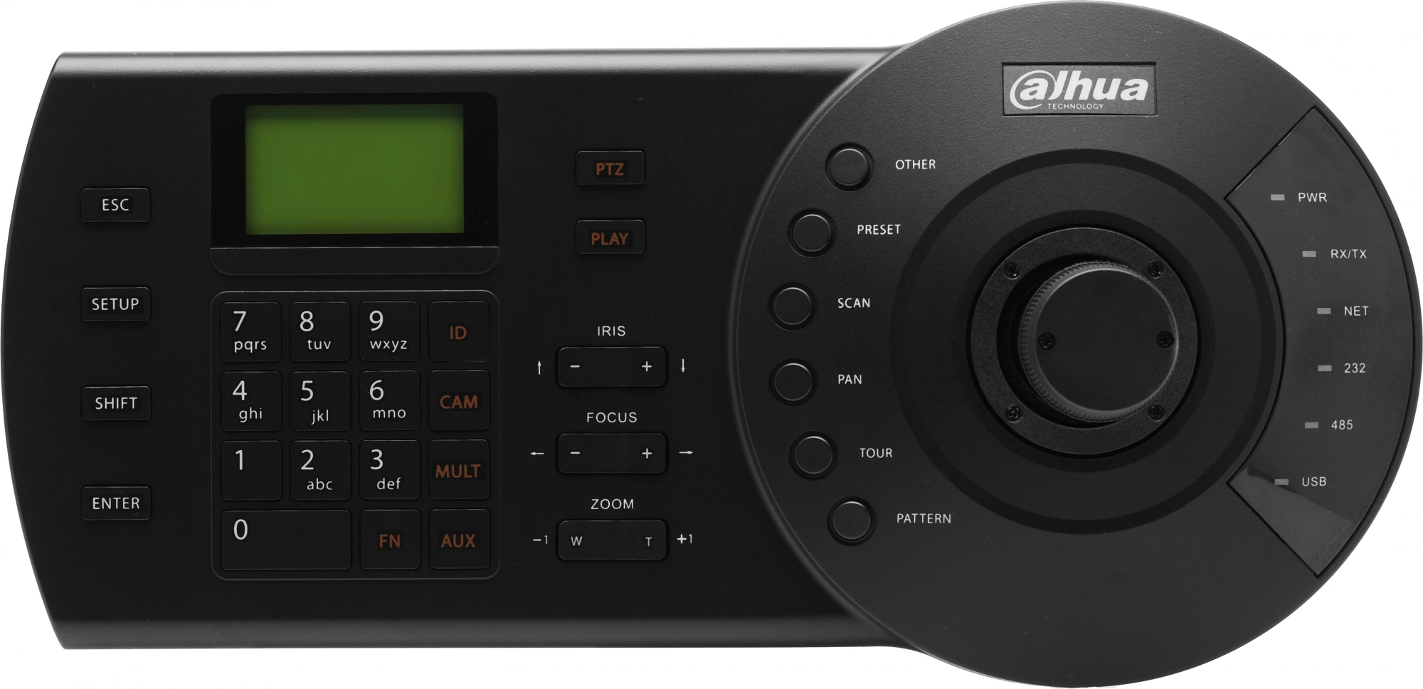 интерфейсы: Ethernet, RS-485, RS-422, USB, RS-232; PTZ-функции: предустановки, автосканирование, автопанорамирование, автотур, управление шаблонами; функции видеорегистраторов: переключение экранных раскладок
