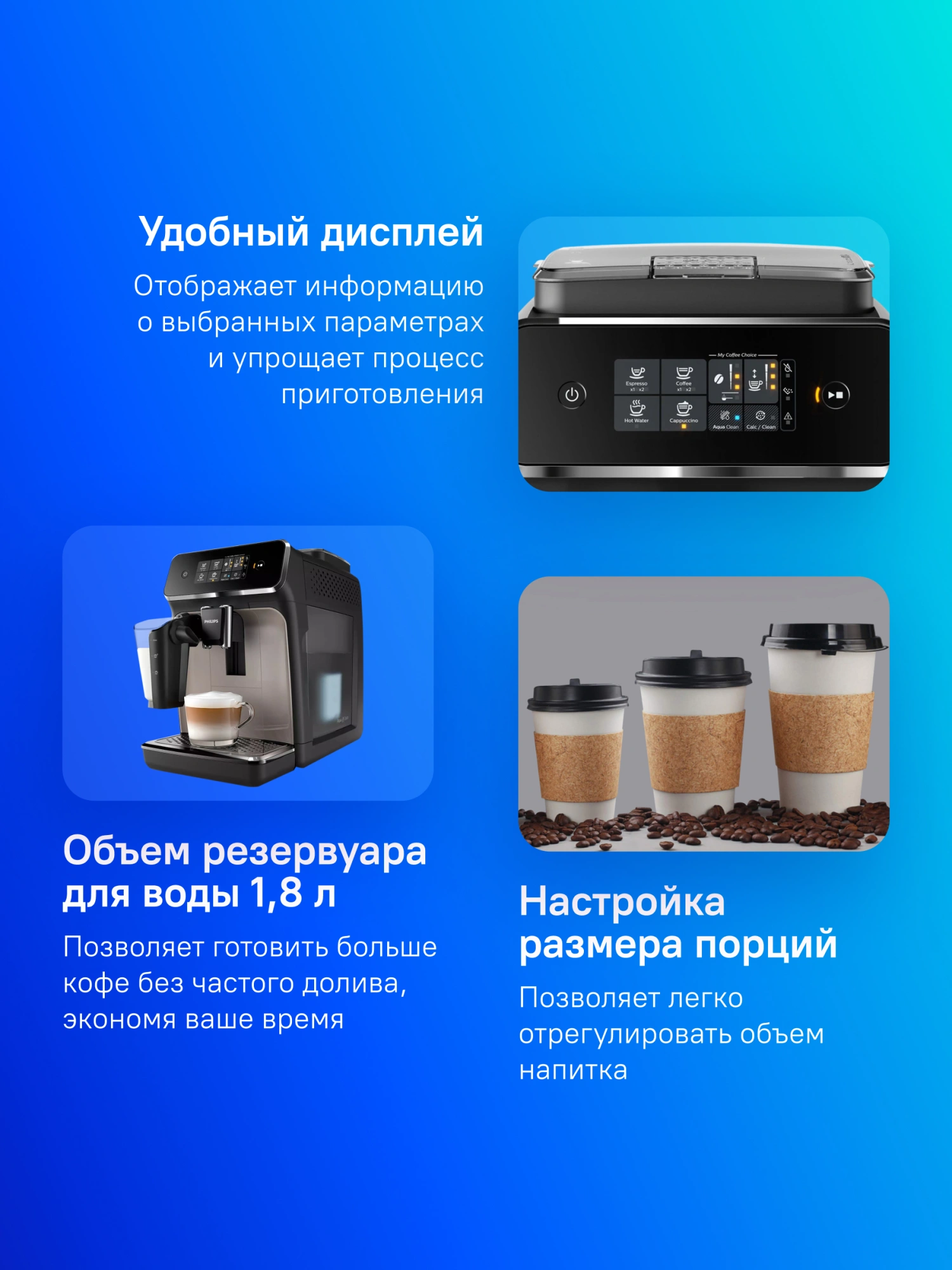 Готовьте любимый кофе — эспрессо, кофе и капучино — одним нажатием кнопки. Капучинатор LatteGo подарит вам вкусный кофе с нежнейшей молочной пеной. Он устанавливается и очищается всего за 15 секунд*