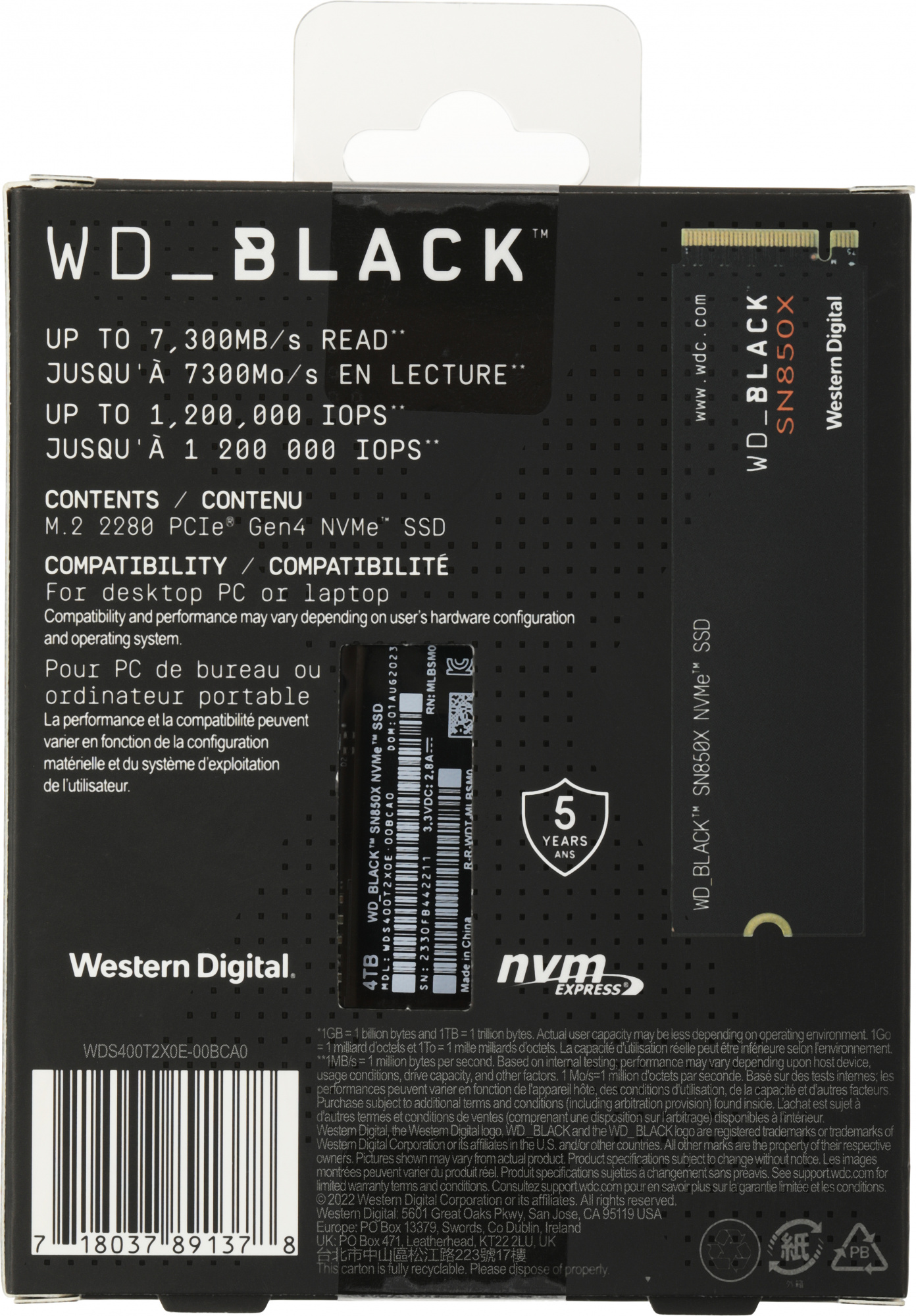 Накопитель SSD WD PCIe 4.0 x4 4000GB WDS400T2X0E
