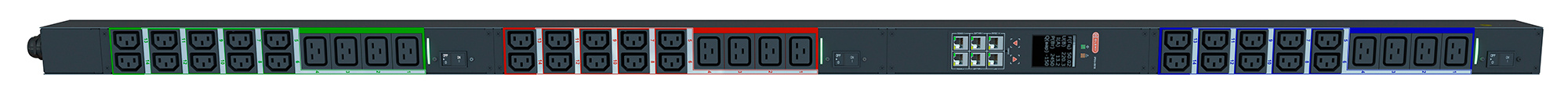 Блок распределения питания Elemy IPDU-5916 верт.размещ. 12xC19 30xC13 с мониторингом 32A IEC 60309 2.4м