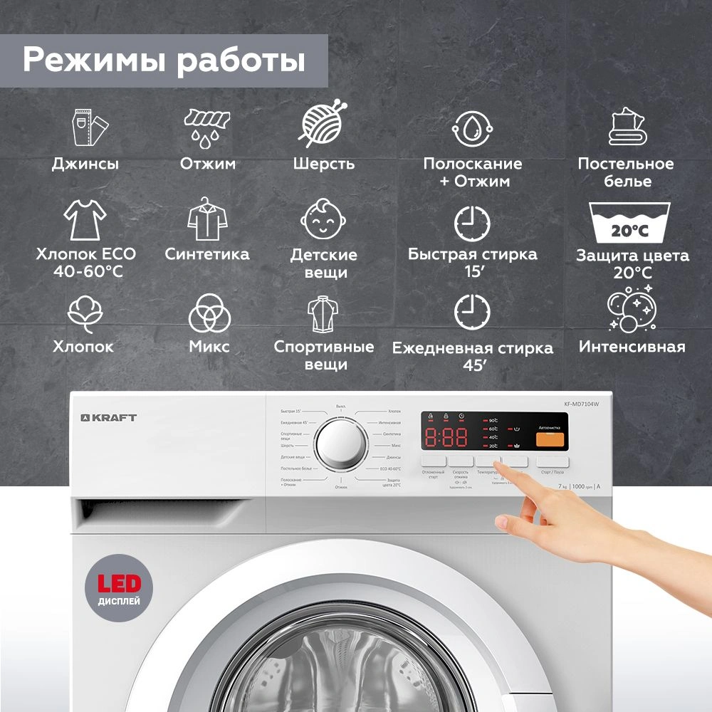 20°С; Быстрая стирка 15’; Ежедневная стирка 45’; отжим