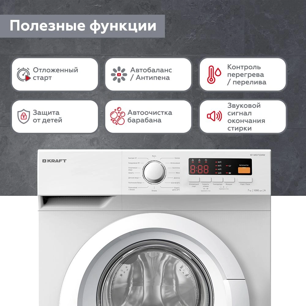 блокировка от случайного нажатия, дисплей, защита от детей, контроль уровня пены, отключение звукового сигнала, самодиагностика неисправностей, таймер отсрочки запуска