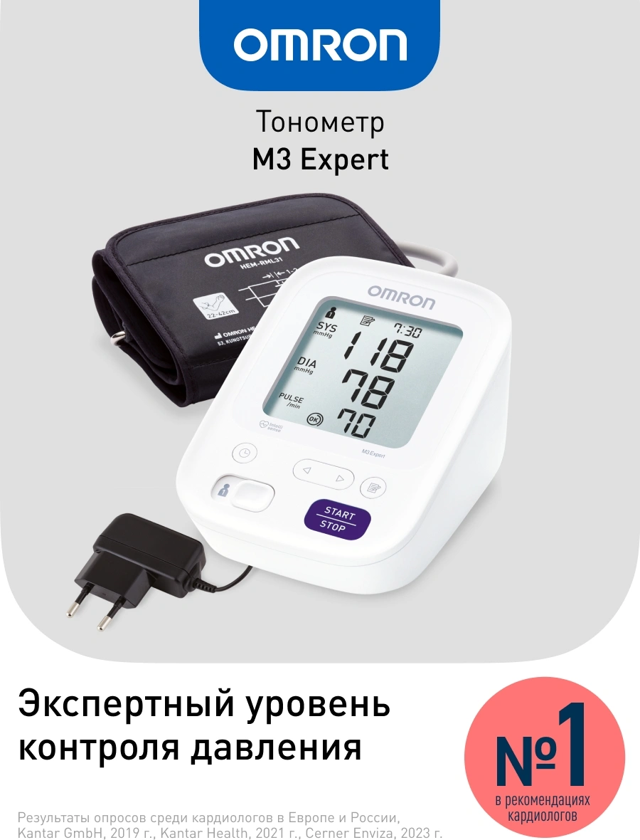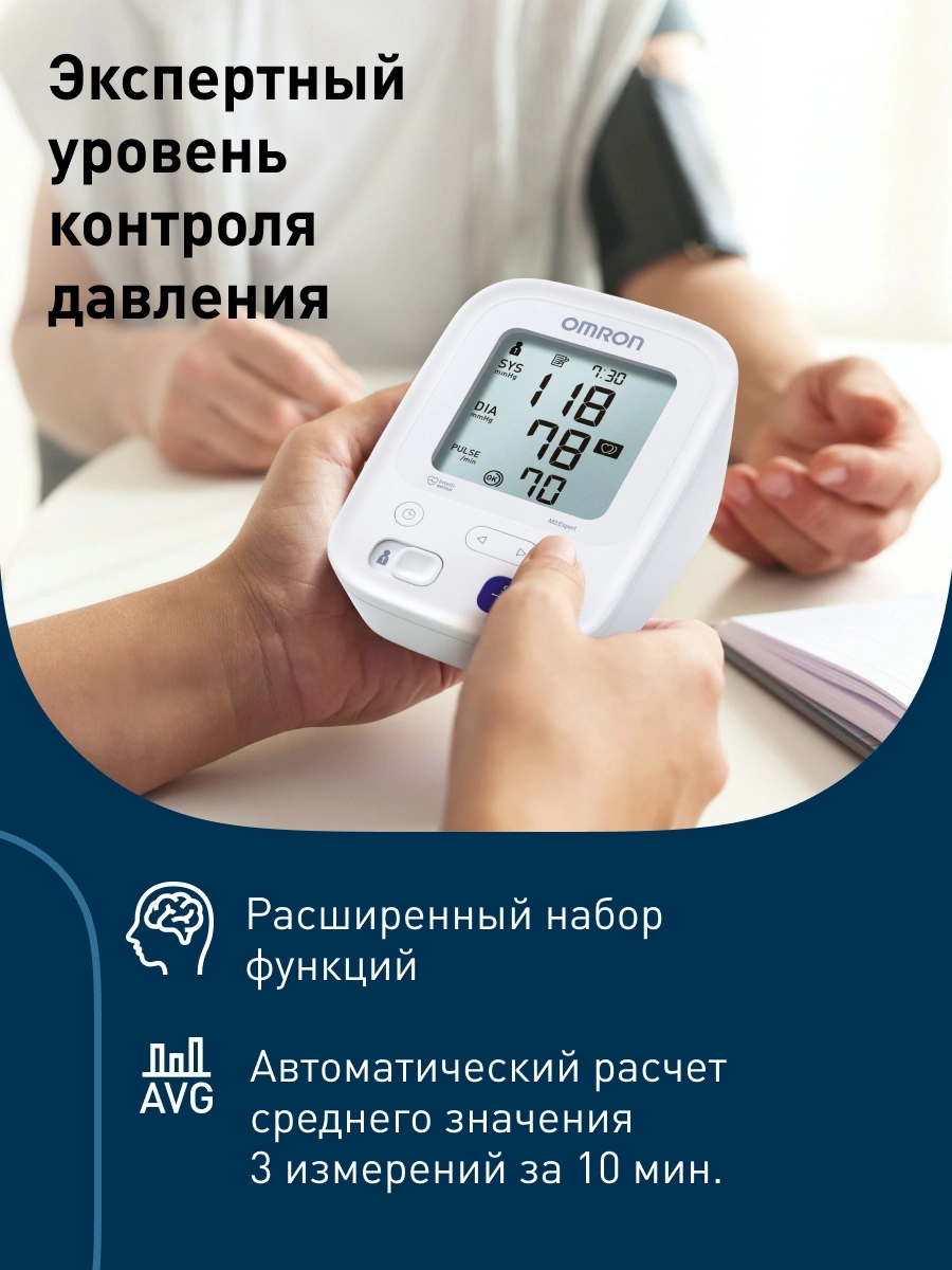 Технология интеллектуального измерения Intellisense, Индикатор движения, Расчет среднего значения, Индикатор правильной фиксации манжеты, Графический индикатор уровня артериального давления, Память для 2 пользователей, OMRON connect, Клинически апробирован, Мини-адаптер в комплекте